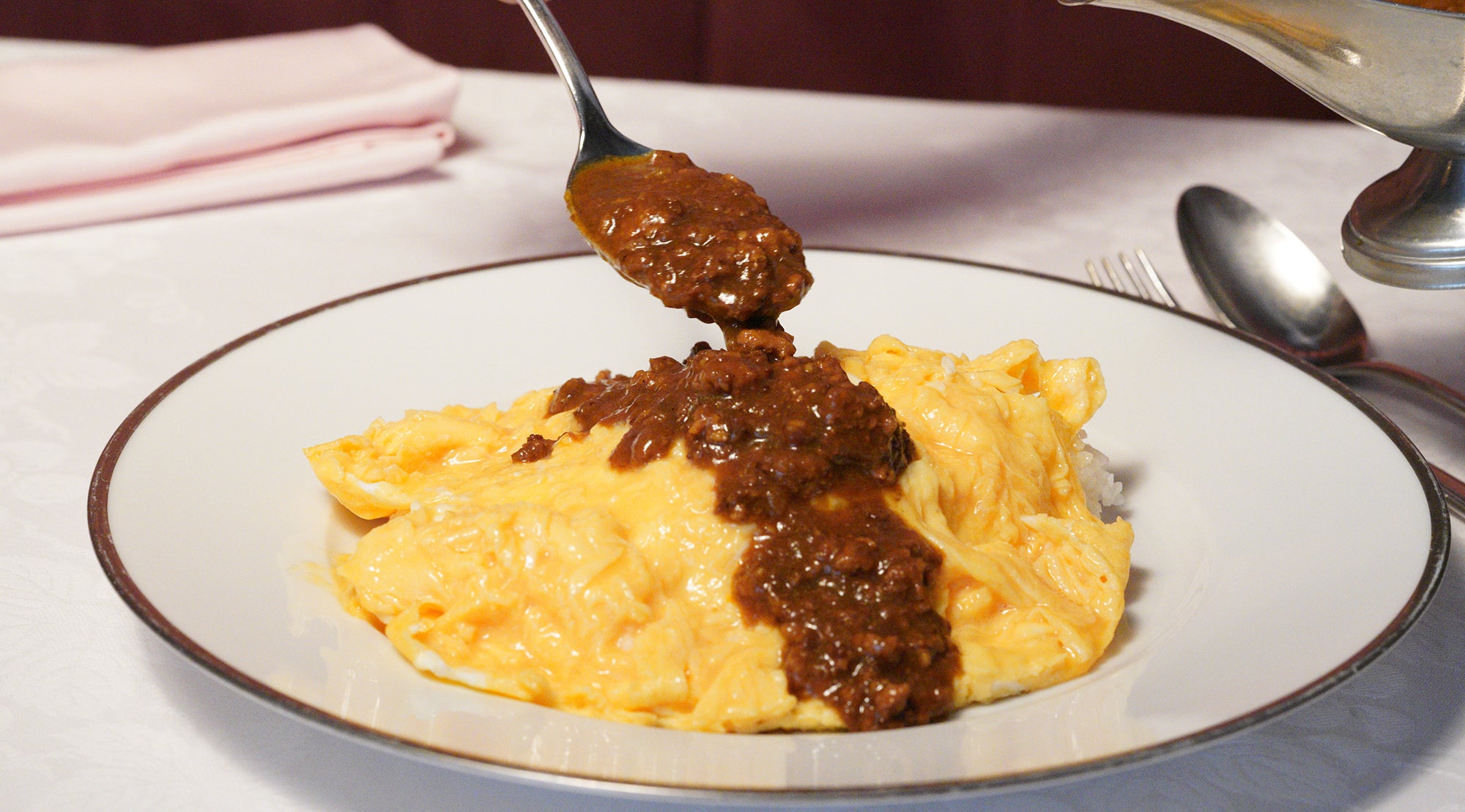 1階のドンピエールでは、オムライスやビーフカレー、ハヤシ、キーマカレーなど気軽に洋食をお楽しみいただけます。と言いましても作るのはフレンチの一流シェフです。