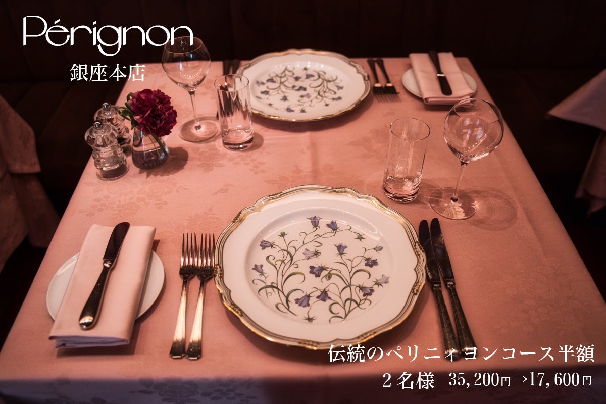 銀座本店にお越しいただけるお客様にはペリニィヨンを体験してほしいとの想いからペリニィヨンコース1名分提供というスペシャルプランもご用意いたしました。特別な日に特別な方をお誘いいただきご来店ください。心より待ちしております。