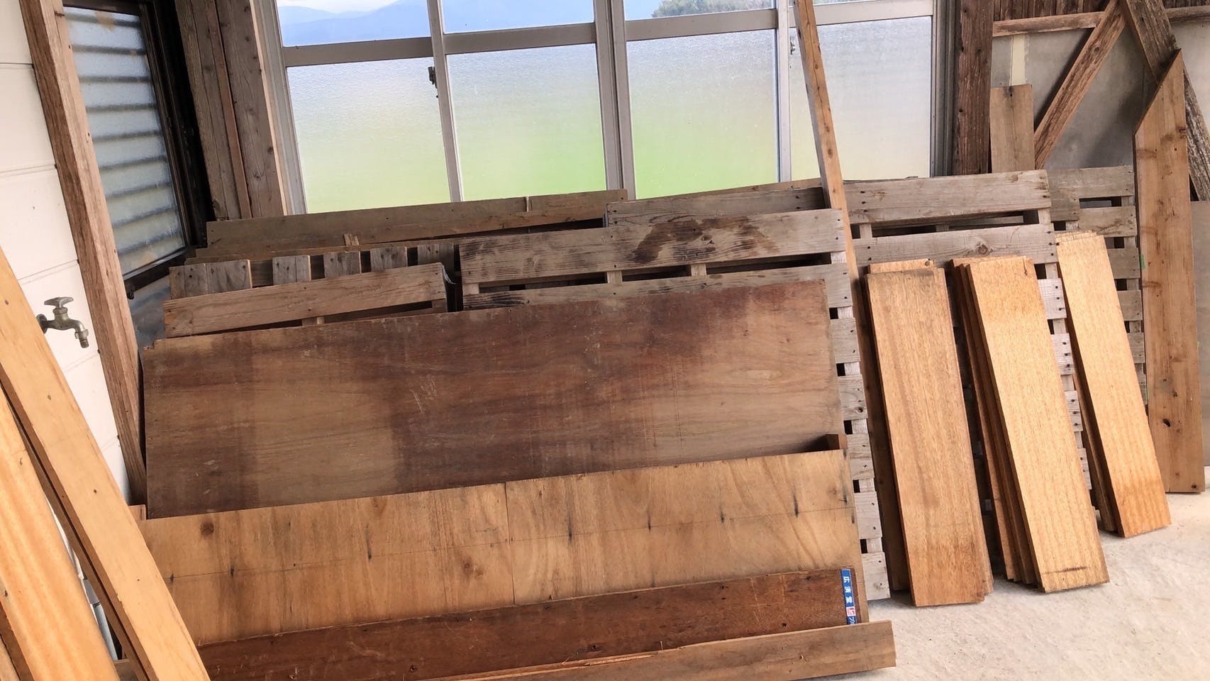 お店の中に置くテーブル用などに、知り合いから木材を提供していただきました。