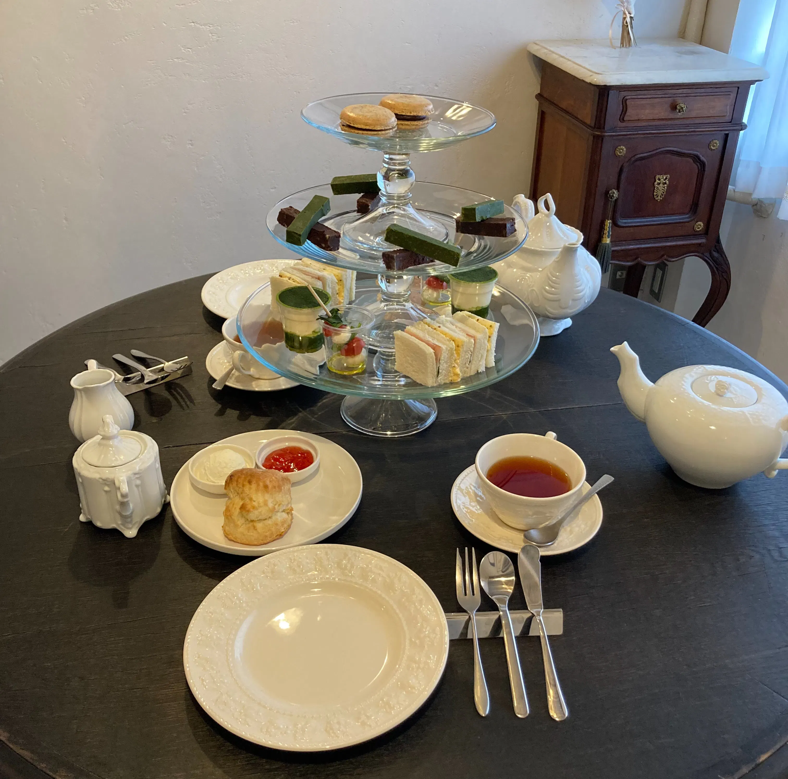 とてもこだわった空間や食器、スイーツでご用意しているのですが、