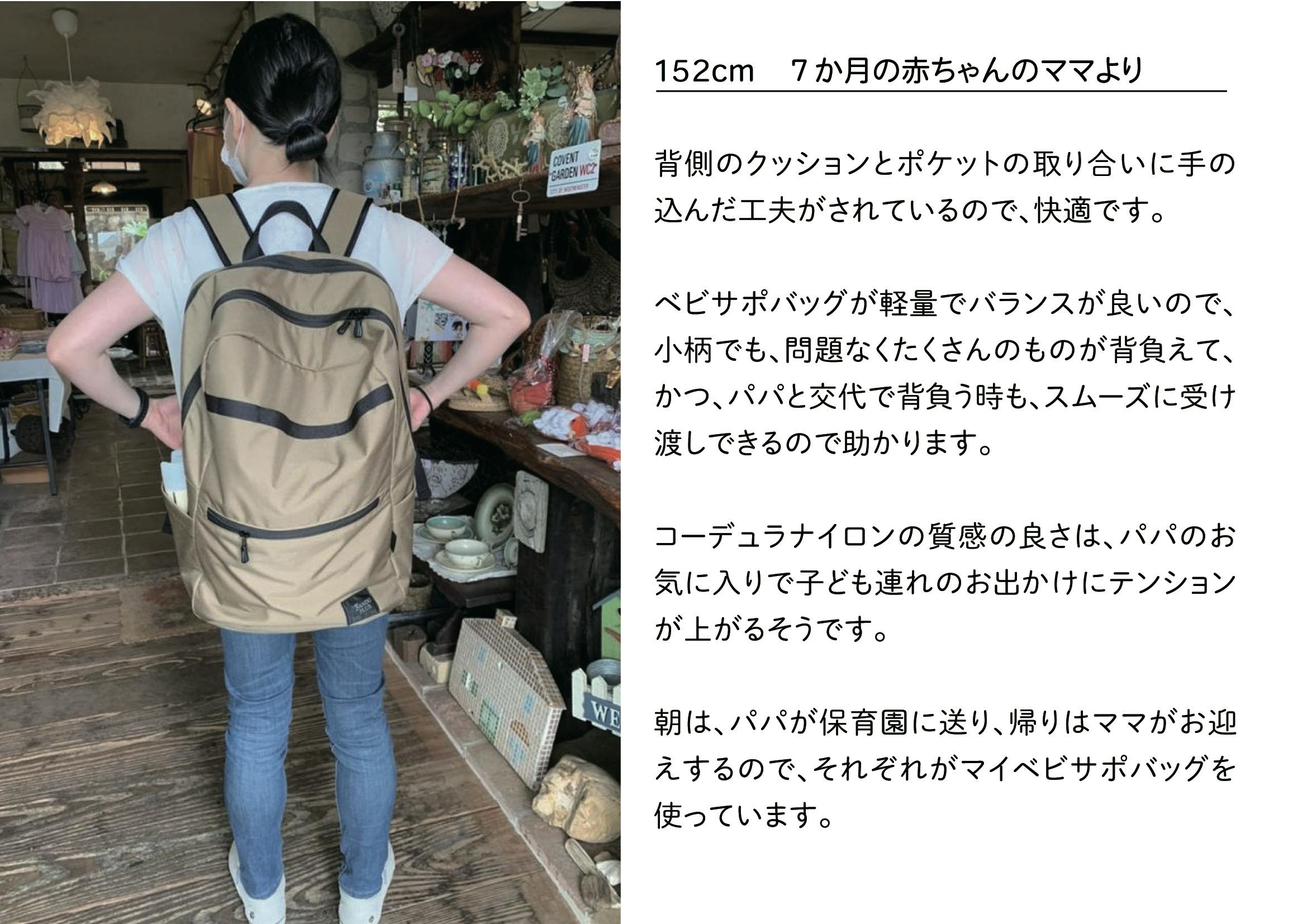 そして、ベビサポバッグの複雑な構造実現は日本の職人にしかできないことを確信して、日本で作り上げました。