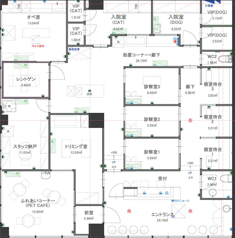 <計画の安全性>動物病院内は換気システムを取り入れ、次亜塩素酸による院内消毒を行います。
