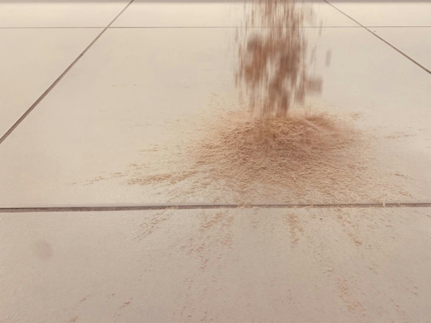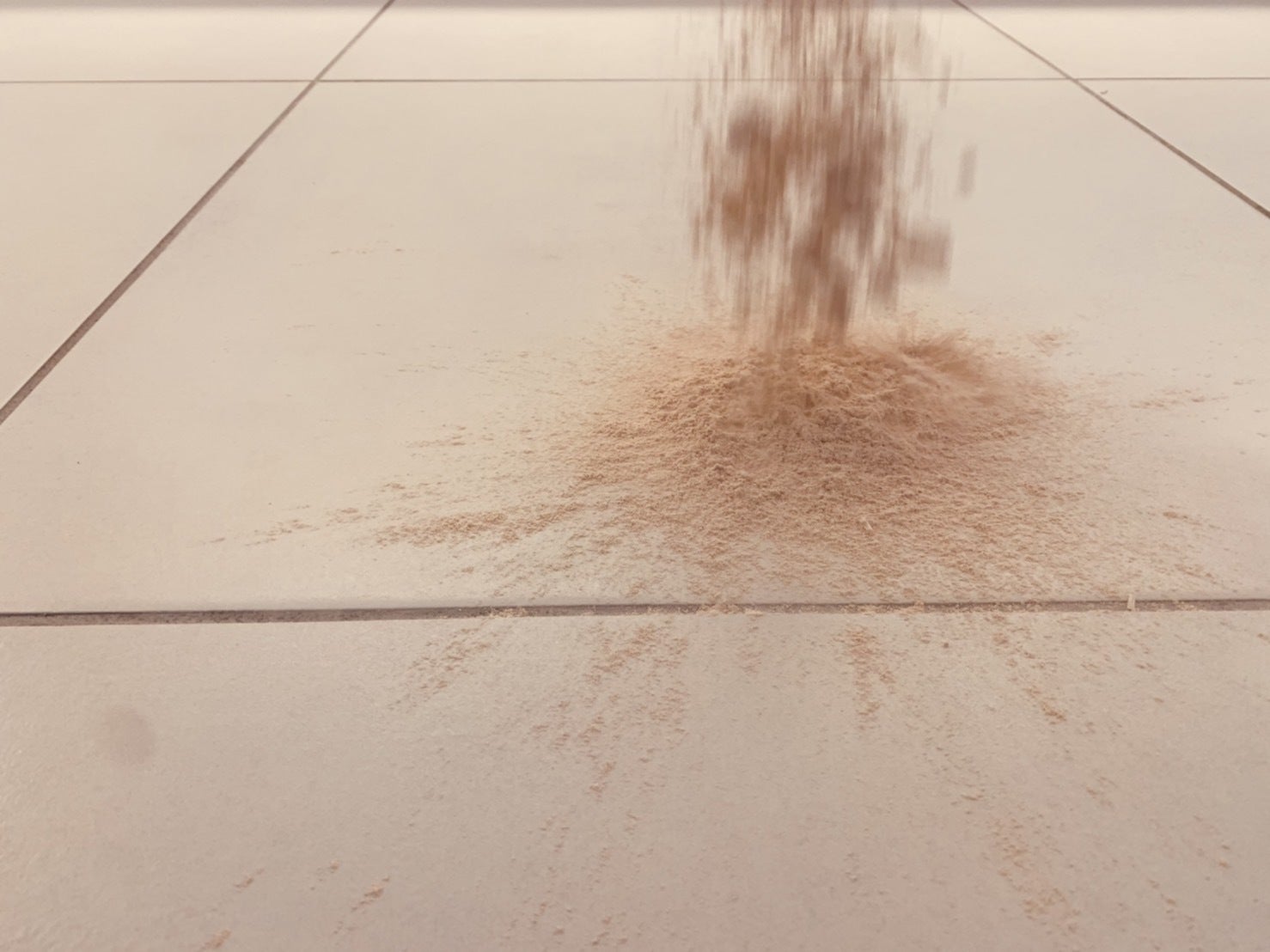 普段は、壁などに使われる素材なのですが、今回、フードを綺麗に撮影するボードをご協力いただきました!パウダー状にすると、抗菌・消臭・調湿などの効果がある「マテラ」は、食品の撮影に適した素材といえます。