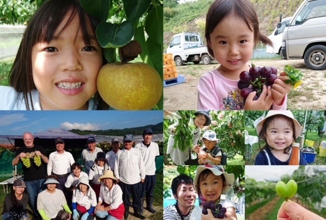 今治市街地から離れた山間に、ぶどうや梨狩りのもぎとり果樹園『芽野歌』があります。ぶどうや梨の他にも桃・柿・ブルーベリーなども楽しめ、珍しい品種の栽培にも積極的です。