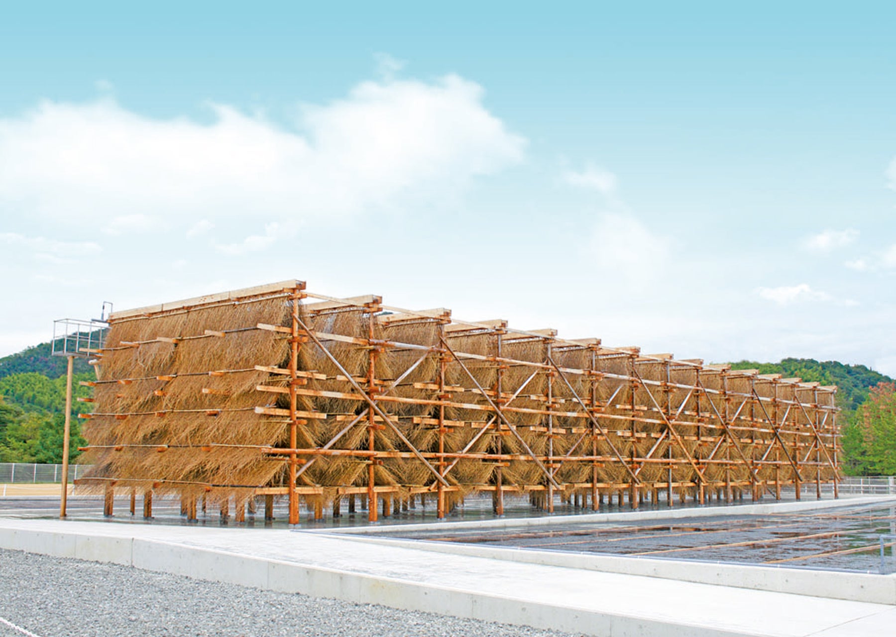 流下式枝条架併用塩田で、大三島沖合の海水を太陽熱と自然の風を利用してつくった濃い塩水を平釜で煮詰めて製造しています。(画像:流下式枝条架併用塩田)