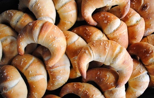 ドイツ定番のパン、Brötchen(ブロートヒェン)。直訳すると「小さいかわいい」というテノヒラサイズのパンです。