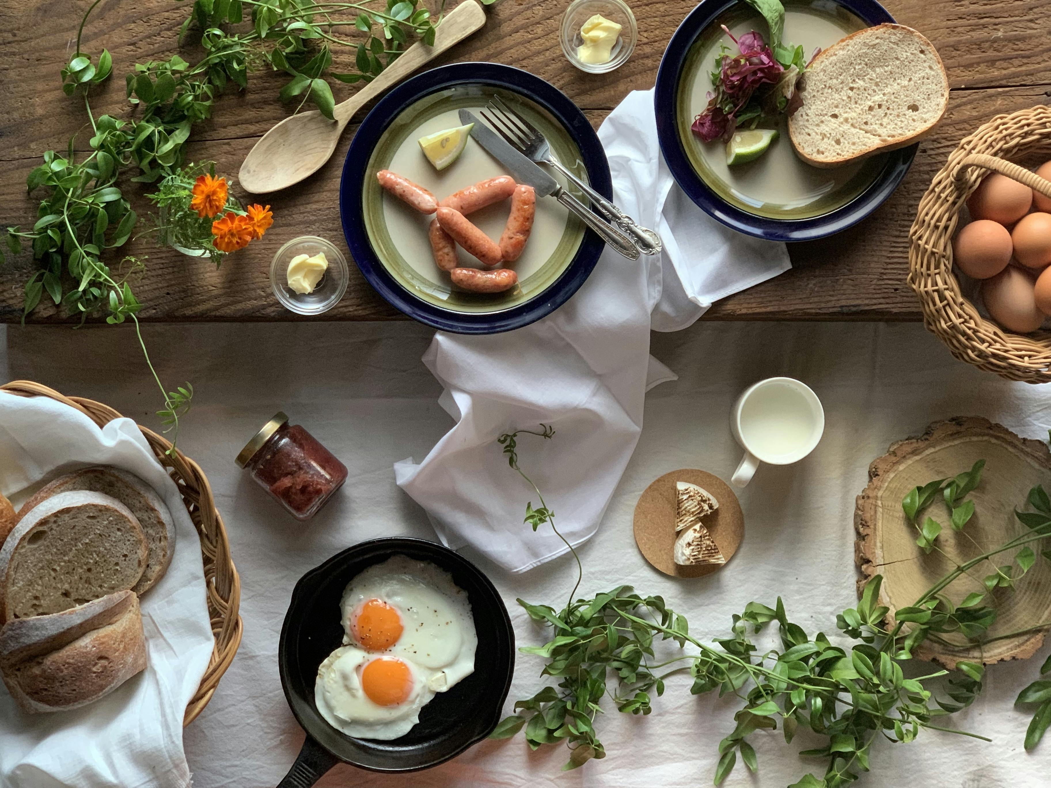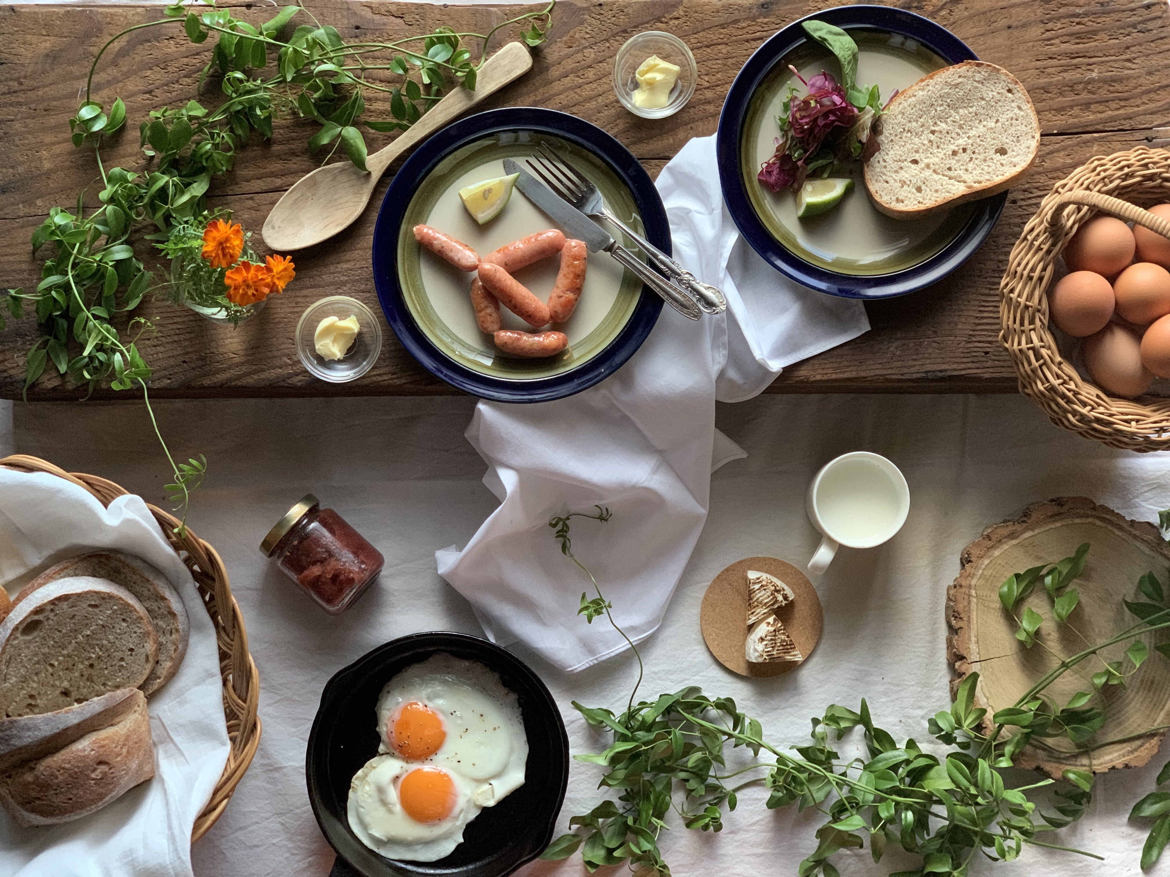ドイツ語で朝食は、Fruhstuck フリューシュトック- ドイツはチーズやハム、サラミ、ジャム、そしてパンで朝食をとる家庭がほとんどです。 ゆで卵やスクランブルエッグ、ヨーグルトやフルーツを取り入れる家庭も多いですね。ちなみに、ドイツ語で目玉焼きは · Spiegelei(シュピーゲルアイ) · というそうです。直訳すると、鏡の卵。面白いですね!