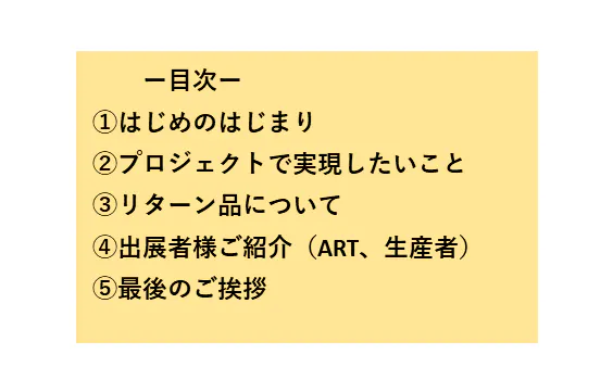 今回のプロジェクトは、リターン品をみなさまの手元にとどき、「こだわりFOOD」の良さを感じてもらえてはじめて完成します。
