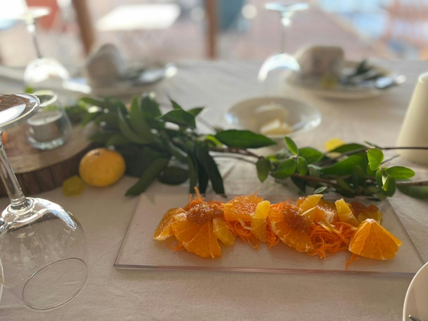 地元でとれた巨峰や柑橘で作る100%の生搾りジュースやご主人の作るキャロットケーキが人気です。レモンやライム、アーモンドに桜といった庭の木々や、季節の花を見ながらテラスでお食事をされる方も多いとのこと。