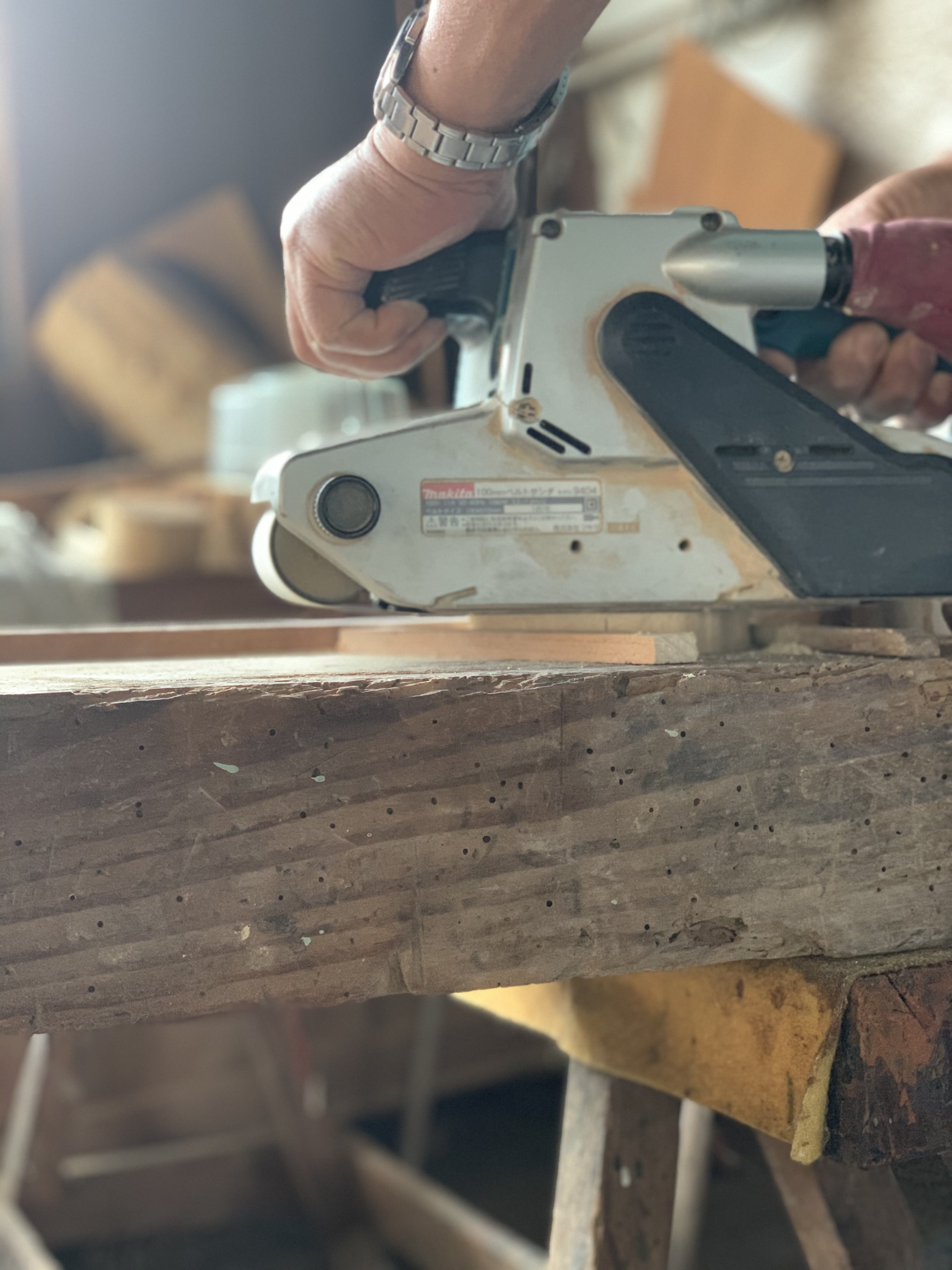 「この地域の木材で、捨てられる端材を使って、食とつながり、循環している様子をつくりたい!」という私たちのこだわりに、玉川の森林組合に連れて行ってくれました。そして、本来捨てられるはずの端材置き場の木材を加工して出来上がったのがこのパン皿です。