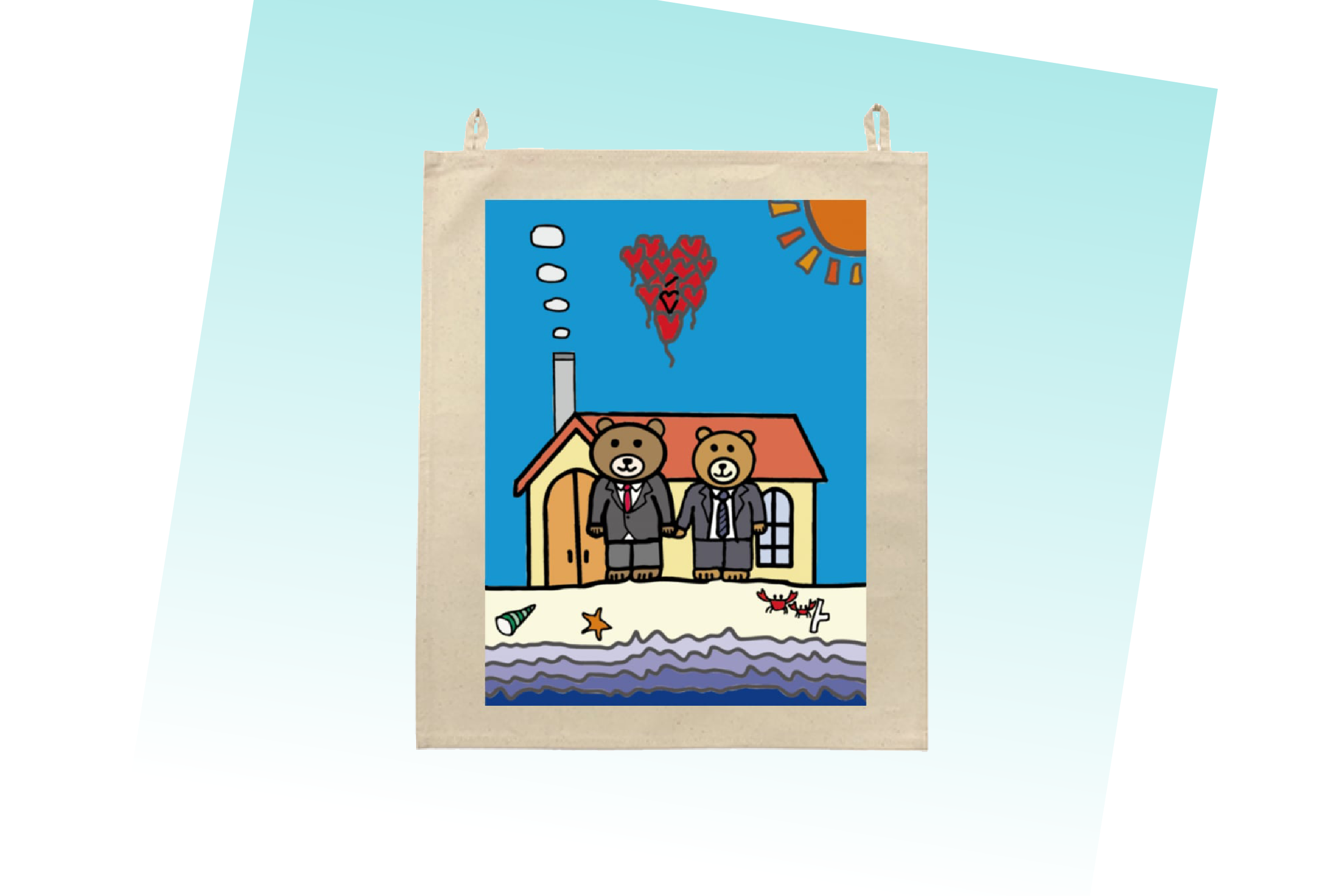 先ずは、ネクタイと蝶ネクタイをしたクマ二匹がお互いを支えあっている姿をデザインをしました。
