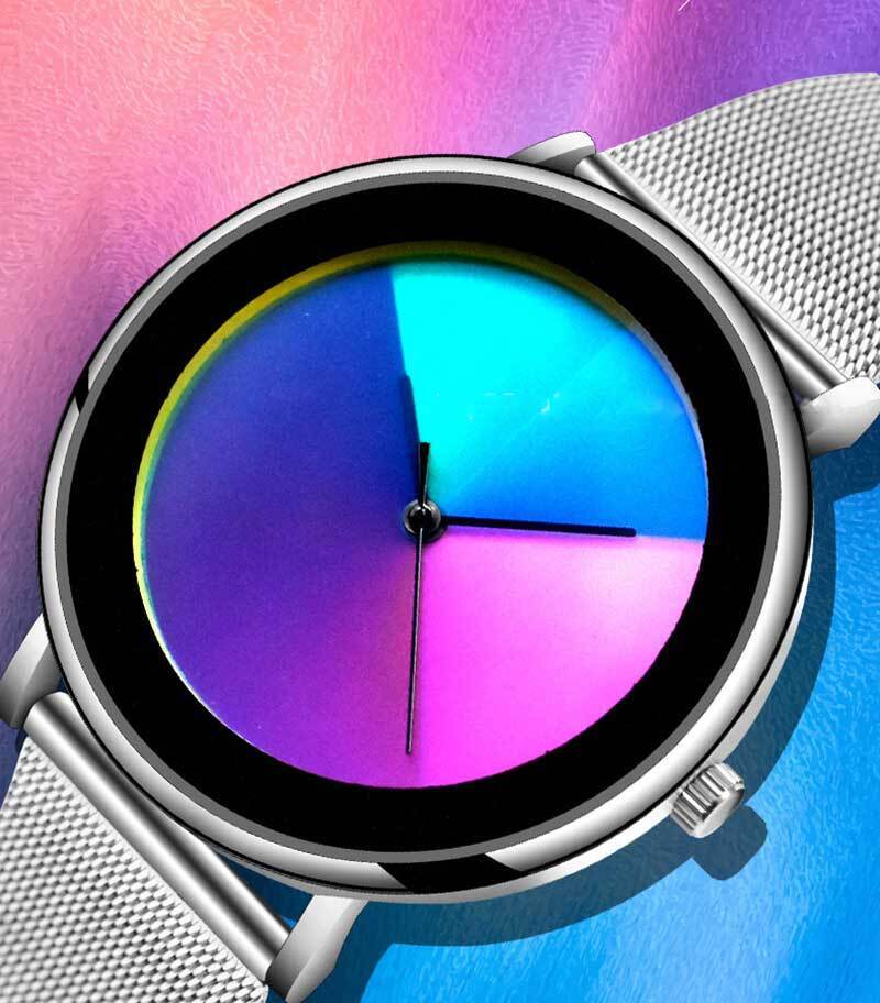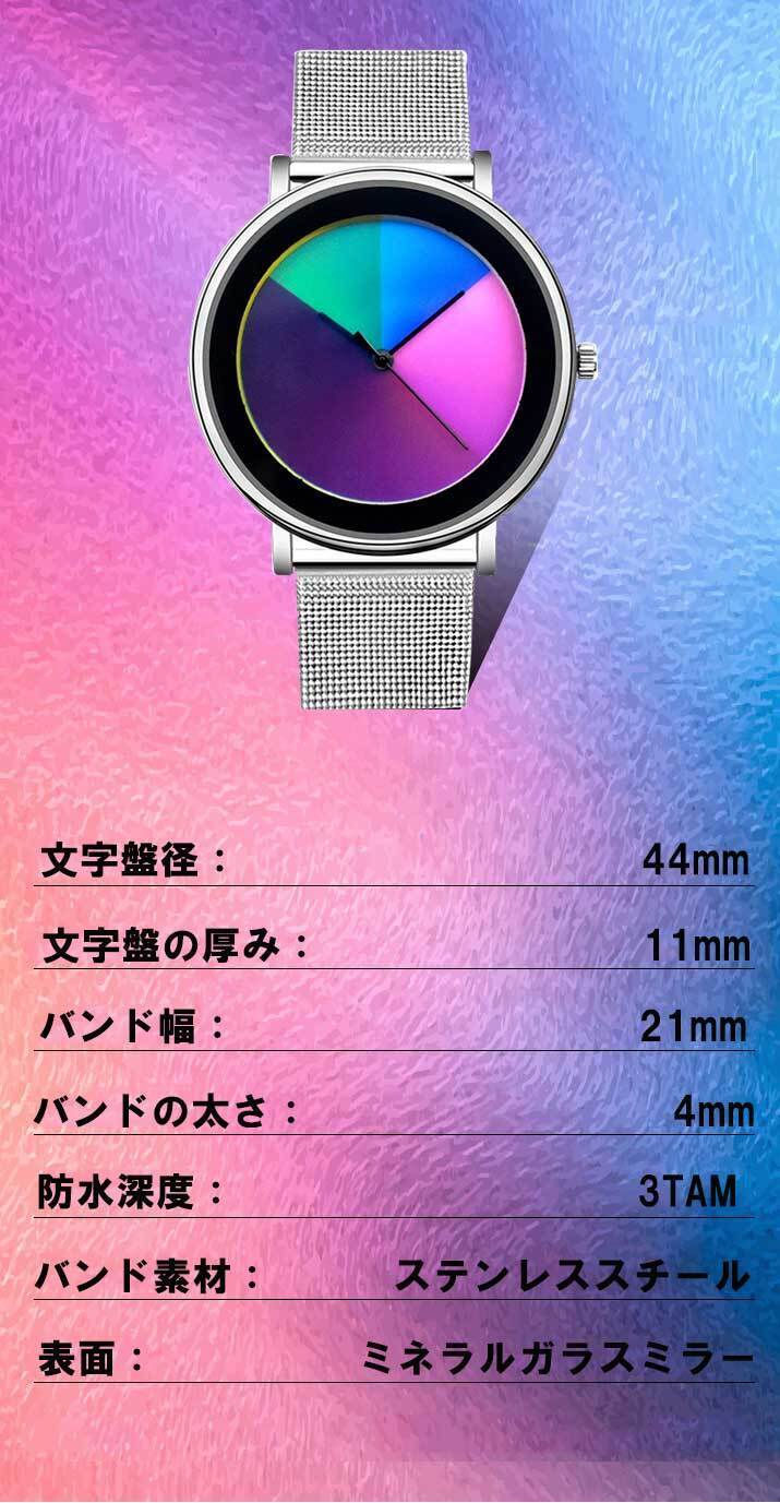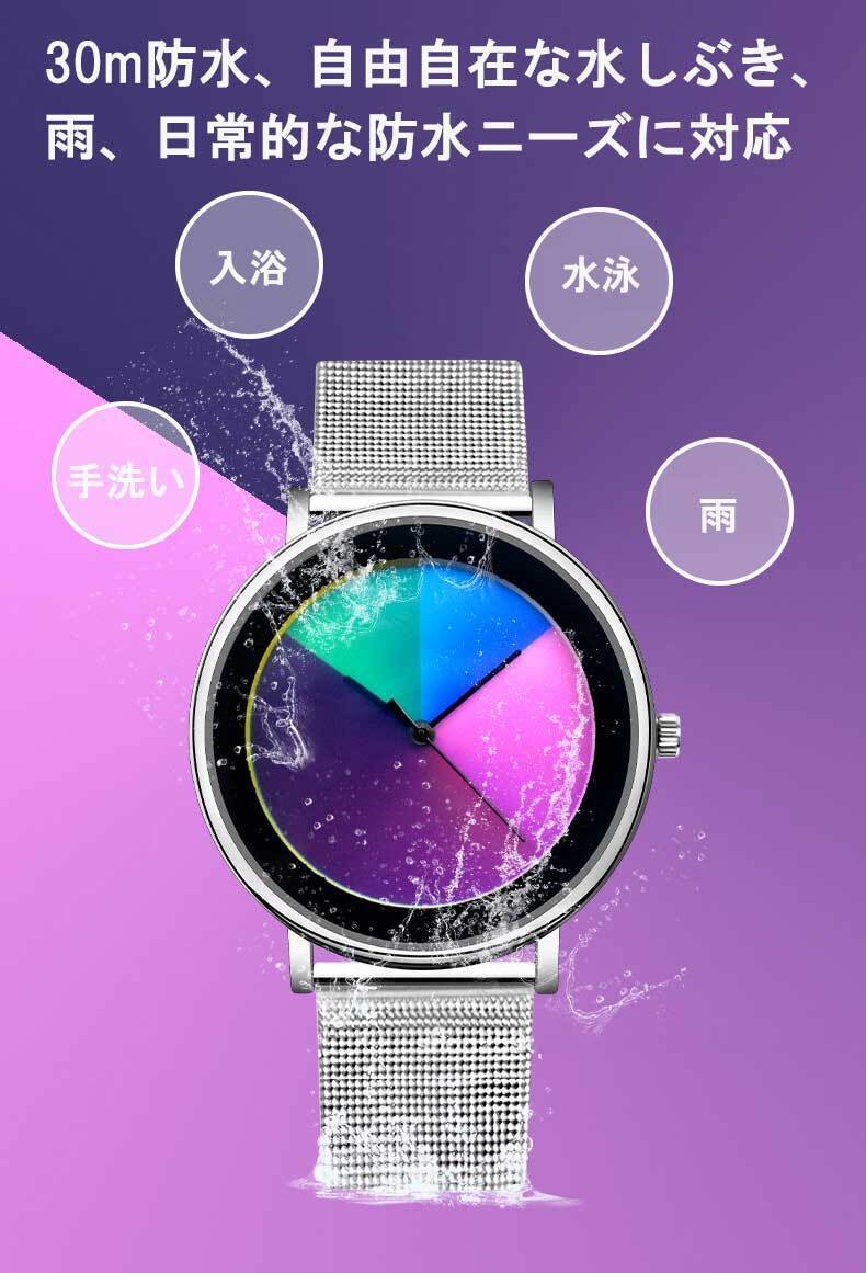時間の経過とともに色とりどりに変化する腕時計・・・。
