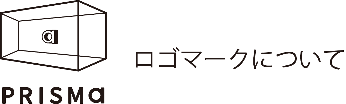 透明な立体に「プラスα」が収まっている。さまざまな角度からメッセージを発するモノの姿をロゴに落とし込みました。透明なアートピースの佇まいをシンプルに伝える、潔良さが際立つPRISMaロゴです。