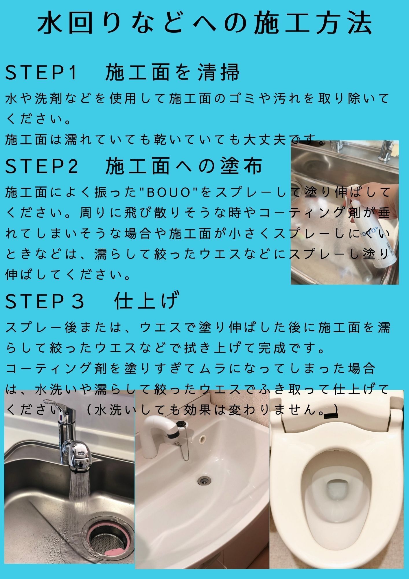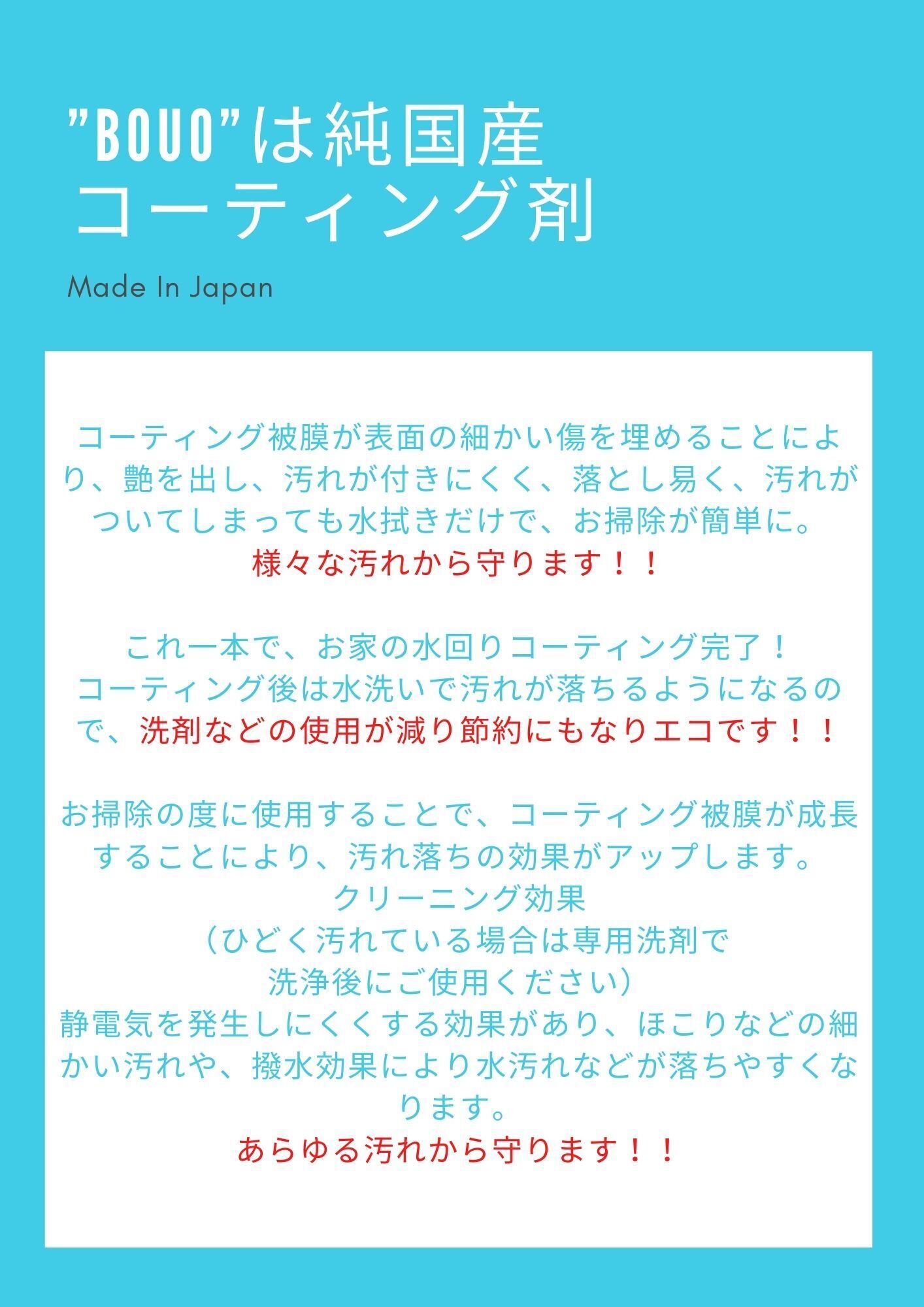 弊社は海外との事業を目的に立ち上げたばかりの会社ですが、コロナ禍の為なかなかうまく進まず困っていたところ、開発者の方にこのコーティング剤の開発研究に携わらせて頂けるチャンスをいただき、最初は別目的で開発されたこのコーティング剤を、主婦目線で家庭内の水回りに使えるコーティング剤として、様々なところ、素材で実験させていただき、水周りだけでなく、車にも使えるコーティング剤が、完成!製造販売させていただけることになりました。