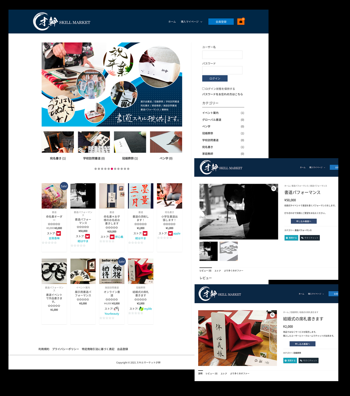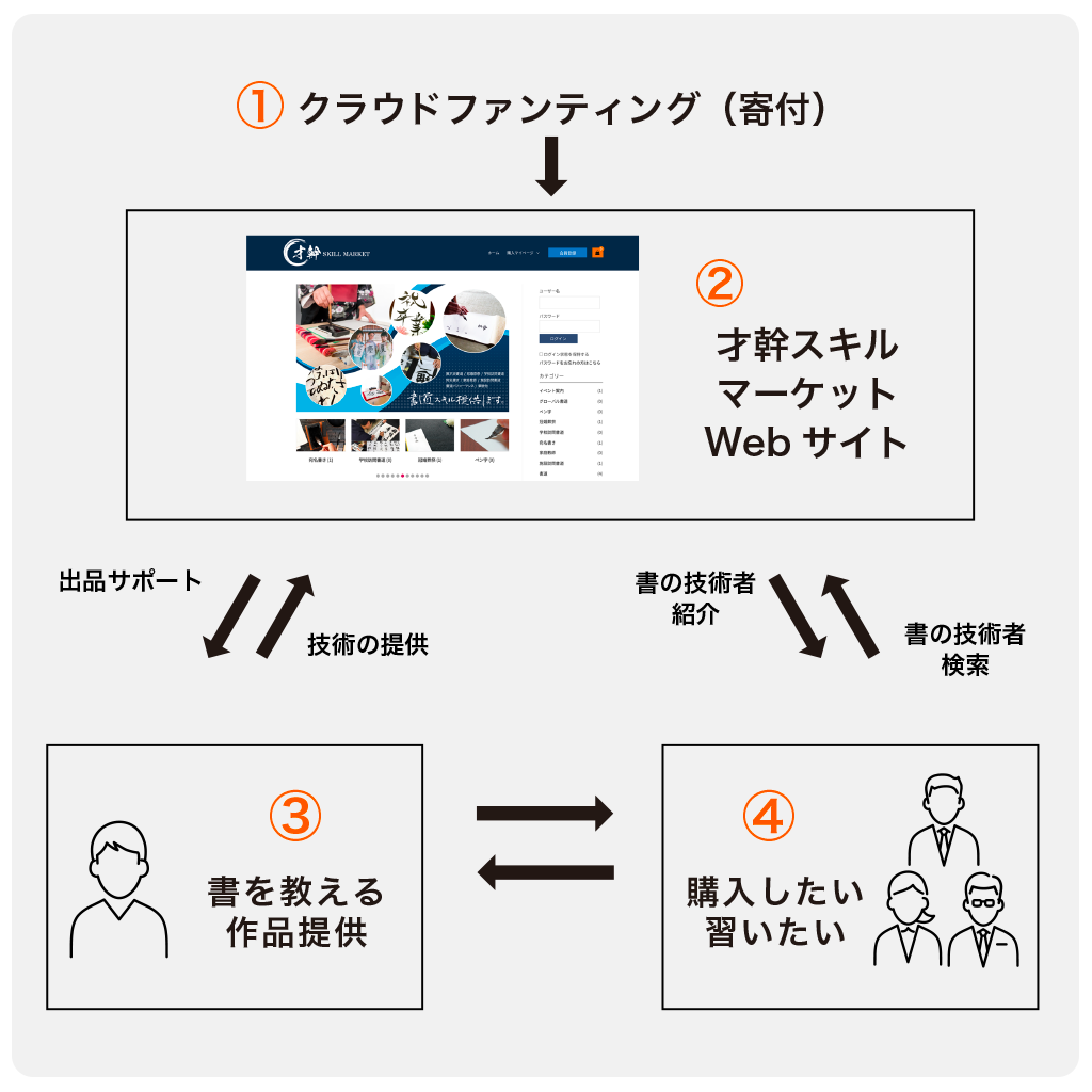 ② 才幹スキルマーケットのWebサイトにて、書のスキルを提供したい方、依頼したい方、購入したい方のサポートをさせていただきます。(写真:Webサイトイメージ)