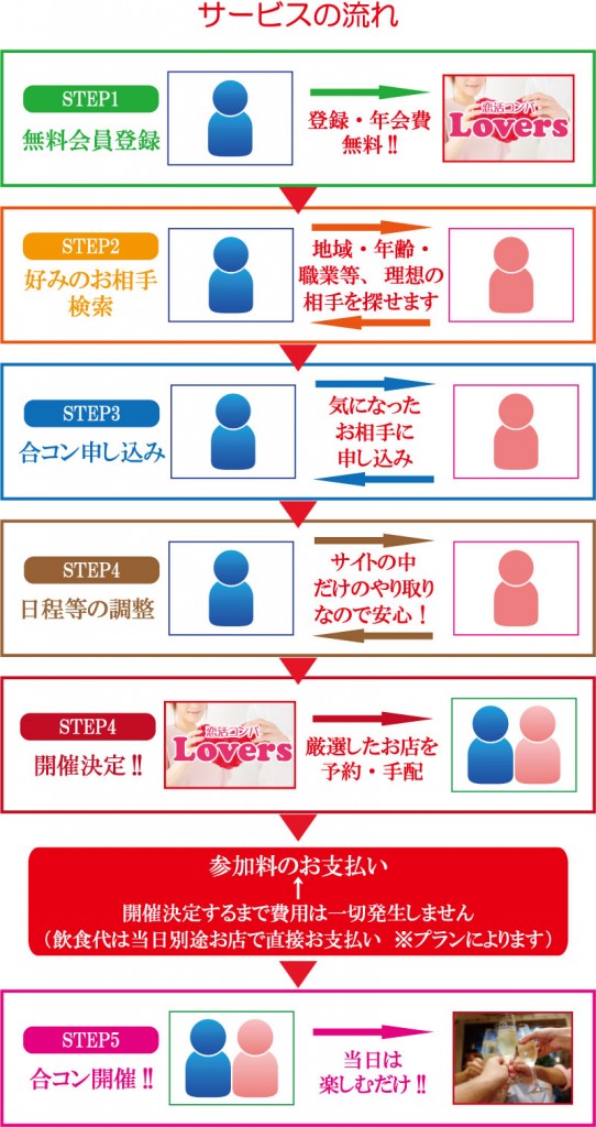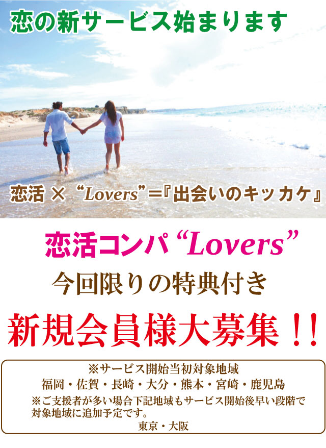 「恋活コンパ Lovers」とは、「誰もが安心して気軽に利用でき、かつ真剣な出会いを提供する」をコンセプトに合コンのセッティングサービスやお一人様から参加できるコンパを開催する恋活応援サイトです。