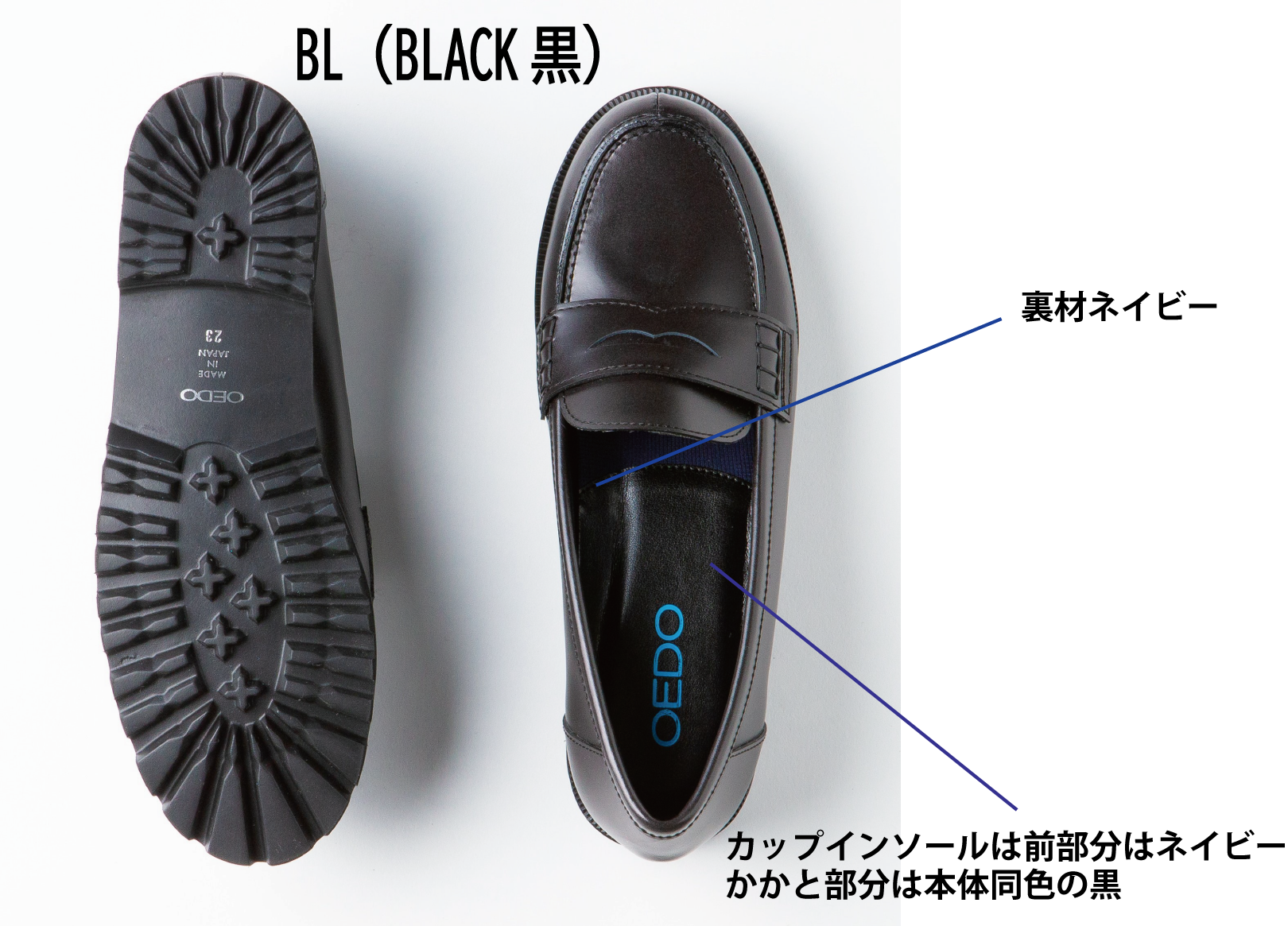 ・BL(BLACK)黒 /裏材:ネイビー/ カップインソール 黒