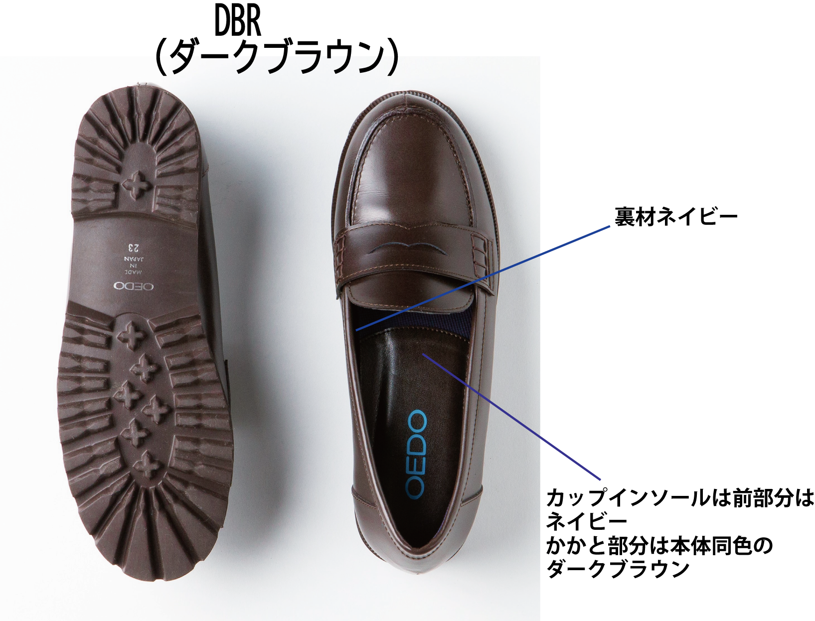 ・DBR(DARK BROWN)ダークブラウン/ 裏材:ネイビー/ カップインソール ダークブラウン