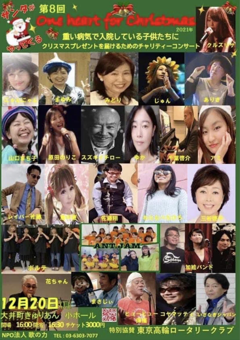 このプロジェクトに応援メッセージをいただいている小山さんが理事をしているNPO法人歌の力 さんが主催のクリスマスチャリティーコンサートに行ってきました。このコンサート代は全て小児病棟、特別支援学校、放課後デイサービスのお子様へのクリスマスプレゼントとなるそうです。例年ではフィリピンの病院や孤児。障害者支援施設へもプレゼントを送っていたそうですが、昨年、今年とコロナの影響で支援が行えない状況だそうです。早くコロナが収まることを願います。このコンサートで歌った盲目の高校生歌手のちひろさん。その声量、透明感のある歌声そしてもう1人同じ盲学校の先輩の翔君の天才的なキーボード歌を聞いて涙が出たのは初めてかもしれません。 私も自分に出来ることで貢献したいと思います。