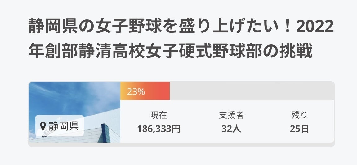おかげさまで多くの方にご支援を頂き、大変嬉しく思います。