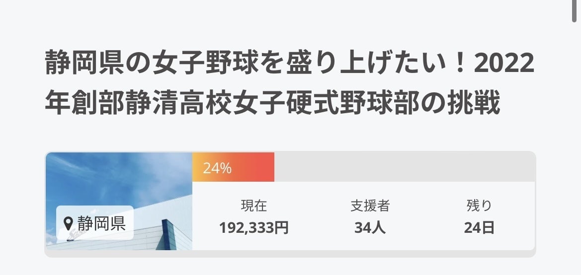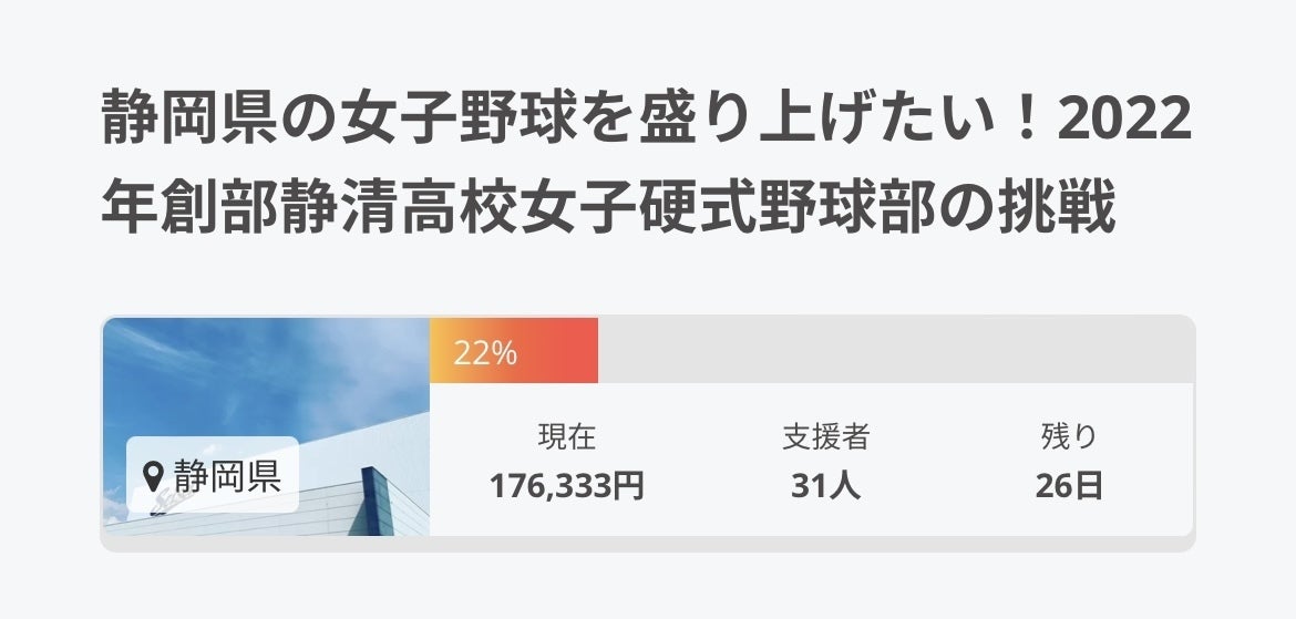 クラウドファンディング【5日目】本日もご支援頂きありがとうございます。【進捗率21%】【29名様 170,333円】となりました。本日は休日ということで、創部準備自体は行っていません。私(岩見)は試合の為、広島に来ています。広島県にある『佐伯高校女子硬式野球部』さんが本日、雨の降る寒い中、試合のお手伝いをして下さりました。そんな佐伯高校さんを見て、私たちも4月から野球も頑張りながら、社会貢献活動や試合運営なども率先して行い、周りから応援されるチームになっていきたいな。と感じました。また、本日は支援して頂いた数名の方にお会いすることができ、直接お礼をお伝えすることができました。本当は、支援者全員に直接お礼を申し上げたいところですが、なかなか難しいのでお許しください。本日もありがとうございました。引き続きご支援、ご声援の程、よろしくお願い致します。