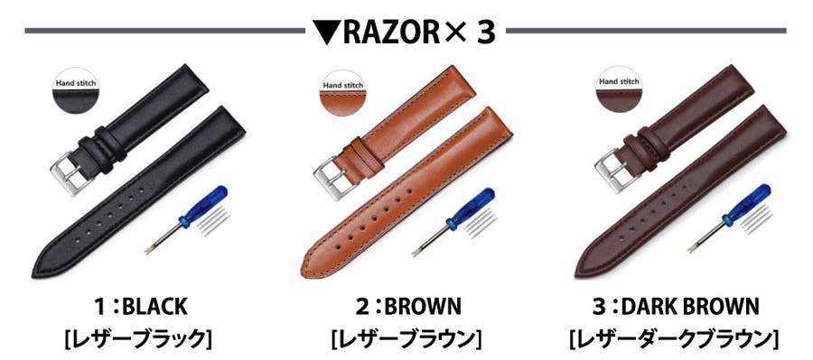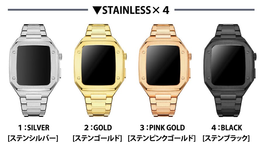 ステンレス:汗や水、サビに強い。耐久性が高く、衝撃を与えても破損しにくい