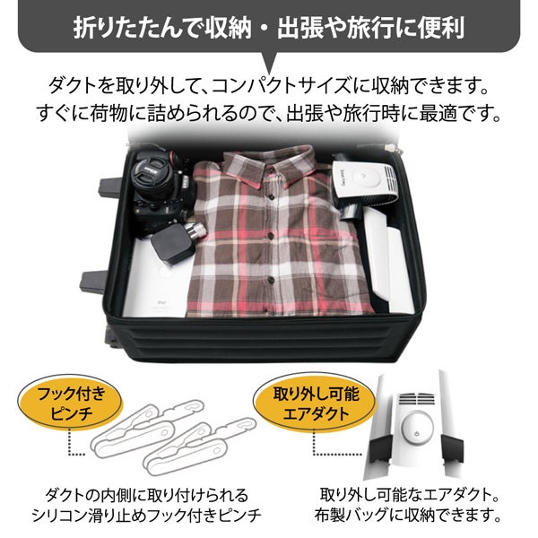 組み立て型、軽量で持ち運びにも便利、収納やすい速乾ハンガー型マルチドライヤー、旅行、出張、キャンプなど様々な場面で便利にご使用頂けます。