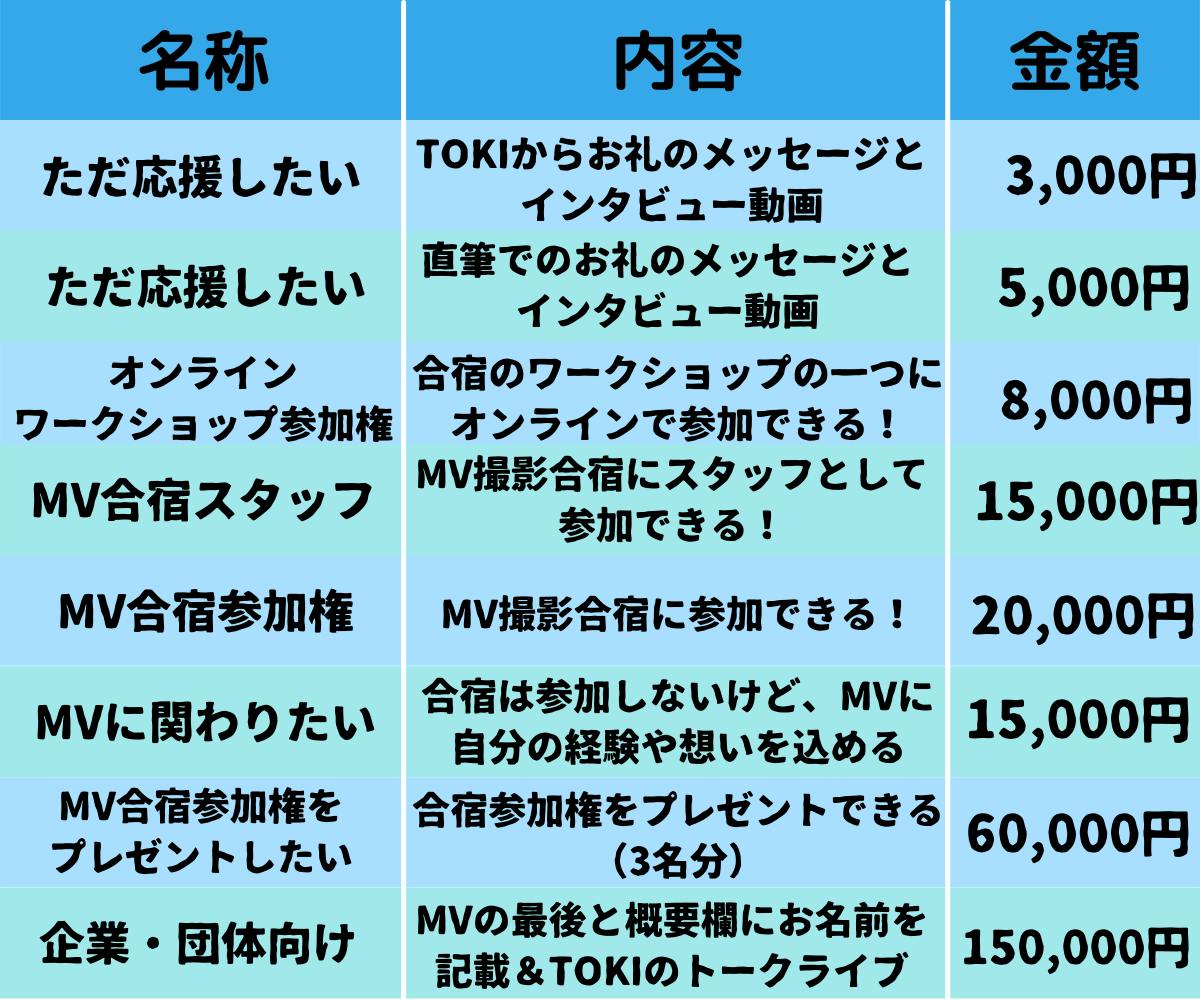 2021/12/07 23:27この度、楽曲「学校には行きたくなくなった」のMV制作合宿にご協力頂きました皆様へプロジェクト運営メンバーより、無事に合宿が終わりましたのでご報告致します。==清水十輝本当にありがとうございました!クラウドファンディングでの目標金額は60万円でした。結果436,003円にて終わり、目標金額を達成するという期待にお応えすることはできませんでした。日々の積み重ねの甘さが生んだ結果だと自覚しています。ですが、クラウドファンディング終了後に直接ご支援を頂いたり、合宿のドタ参加もあった為終いには目標金額を上回る資金を調達することができました!!これ全て家族と仲間のおかげです。ありがとうございます。12/4,5の2日間は、MV制作合宿を開催し11名の出演者と8名のスタッフにご参加いただきました。「学校」というキーワードがピンポイントなだけにとても深く、とても親密な共有の場となりました。撮影に挑んだ2日目の団結感は、1日目で作り上げた信頼のもと発揮されていてきっと映像越しにも伝わってくるものがあると思います。何よりも、一人一人が輝きを増していく姿が美しく感動的でした。ロケは邑南町の旧宇都井駅この場所を使わせていただけたのも役場の方、地域おこし協力隊の皆さんそして地域の方の協力があったからです。役場の担当者の方は普段からこの廃線でトロッコを走らせています。「JR側の採算が合わなくて使えなくなってしまったものなら、自分たちでもっと面白い使い方をする」この曲の内容との根っこにあるDIY精神、反骨精神はとても近いものなのかも知れないと語らいました。見えないところで支えてくれた一人一人のおかげで全てあります。ありがとうございます。==谷口蒼一郎皆さま多数の御支援ありがとうございました。 子供世代から親世代まで幅広い世代が集まり、無事にMV合宿を終えることが出来ました。1日目は自分の過去と向き合い内省し、仲間達とシェアをする時間になりました。自分の辛い経験を仲間達とシェアすることでより深い関係になることが出来ました。2日目は、より深いところで繋がった仲間達と一緒に全力でMV撮影に望めました。それぞれがそれぞれの場所でそれぞれの輝きを放てていました。とても素晴らしいMVを撮ることが出来ました。この2日間を過ごせたのは、御支援してくださった皆さまのおかげです。本当にありがとうございました。==山根シンジ皆さまの熱い御支援の元、素晴らしいMV撮影を終えることが出来ました!今回、関わってくださった全ての方々に感謝を申し上げます。ありがとうございました。このMVは、未だみぬ仲間たちに「俺たちここにいるぜ!」と飾す「旗、フラッグ」のように感じています。12月18日の公開まで楽しみにお待ちください!==鈴木恵理合宿最後のWS、気づきのシェアの時間で話したことをこちらでも綴らせていただきます。自己満足かもしれないけど、二日間を通してのみんなの感想、話す言葉、雰囲気、表情をみて、「やってよかったなぁ」と、「私はこの瞬間を見たくて作ってきたんだなぁ」と改めて幸せを感じました。生後5ヶ月の子から60代の方まで、多様性溢れるこのメンバーでひとりひとりが役割を持って輝いているこの空間、感性や思考を素直に表現できるこの空間に立ち会えたことをとても嬉しく思います。これもひとえにこの曲・合宿・MVにそれぞれの形で想いを寄せてくださった皆様のおかげです。本当にありがとうございます。また合宿を終えた今、この曲・合宿は、もっと多くの人に届く、もっと多くの人の居場所になると確信しています。そのため、今回に限らず今後も活動を続けていきたいと思っております。この度は本当にありがとうございました。==この度監督しましたKohei Tatsutomiです。深いメッセージ性を、大自然に突き抜けるような歌声で歌うTOKIの世界観を最大限私なりに咀嚼して、映像として形にしました。支援していただいた皆様が、この作品の共同制作者として周りに共有したくなるようなMVになるかと思います。ご支援ありがとうございました。=============【支援のリターンについて】未だ支援のリターンをお届けできていない方が多く、大変お待たせしております。申し訳ありません。今月中にお届けしますので今しばらくお待ちくださいませ。=============【公開予定日について】今回制作したミュージックビデオは、TOKI&TOKI academy familyでこの一年を締めくくる集大成【音と地球と僕LIVE】に合わせて12/18(土)に公開予定です!このLIVEに関して、会場チケットは満席(キャンセル待ち3,500円)ではありますが、オンライン配信(投げ銭制)で視聴可能となっております。※配信用URLは後日TOKIのSNS等で発信予定です12月18日(土)12時30分~16時00分(開場)12時00分 (開演)12時30分◑12時30分~14時15分 →“TOKI academy family”◑14時30分~15時30分 →“TOKI”ミュージックビデオの公開、そして集大成LIVEを楽しみにお待ちください!プロジェクト運営メンバーより もっと見る