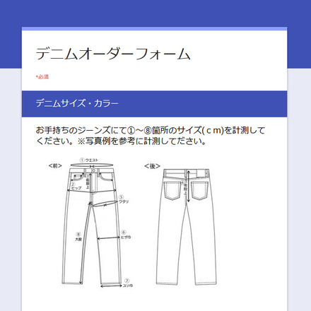 2017/11/20 15:32パトロンになってくださったみなさま、誠にありがとうございます。お届けまでの流れについてご案内いたします。 1.キャンプファイヤーサイト経由で、オーダーフォームのURLをお伝えいたします。 2.オーダーフォームからジーンズのオプションを選択いただき、サイズとご連絡先についてご記入をお願いいたします。 ~~ ジーンズの測り方 ~~~~~~~~~ まずはお手元にお気に入りパンツまたは理想とするパンツをご用意していただき、フォームの指示通りに寸法を測定してください。 ここの部分は1cm縮める、この部分は1cm伸ばすなど悩みに悩んで理想のサイズをご記入ください。~~~~~~~~~~~~~~~~~~~~~ お届けは2018年1月9日以降を予定しております。お届けまで今しばらくお待ちいただきますようお願いいたします。 一生を共にするアイテムです。少しでもご不明な点があるようでしたら、お気軽にご連絡いただければ幸いです。 もっと見る