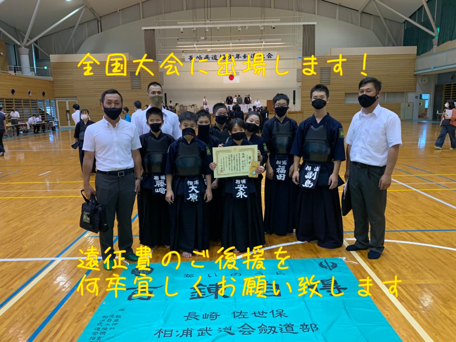 相浦武道会が始まって以来の全国大会です!この経験を通して更に飛躍して、地域を盛り上げる活動につなげたいと思います!何卒お力添えを宜しくお願い致します。