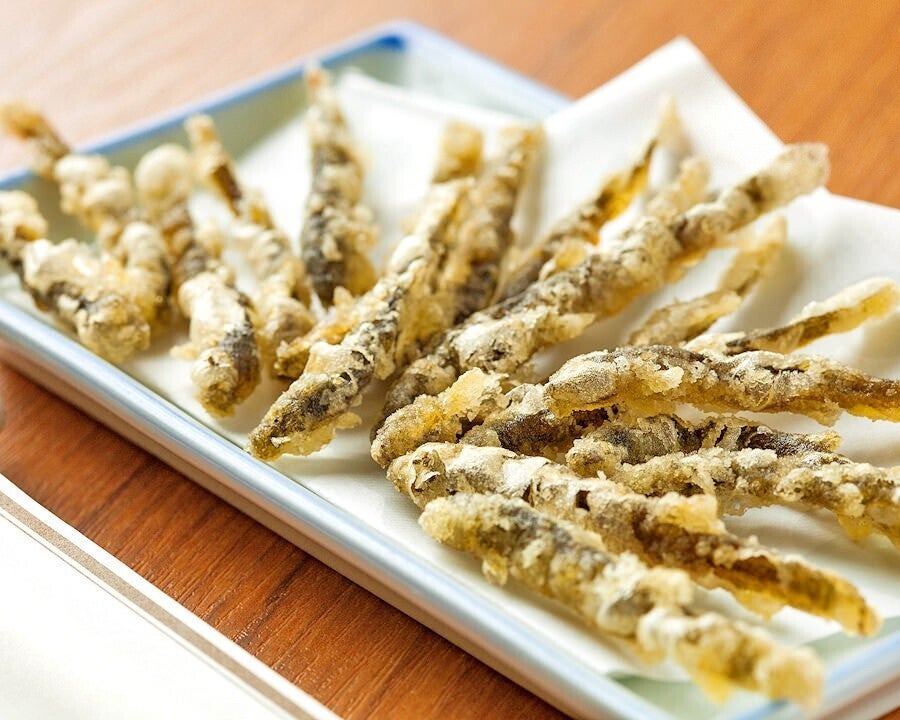 どじょうの天ぷら(tempra) わたしたちの住むにかほ市には、200余年の歴史を持つ、「どじょう汁」食文化が ありました。わたしたちは、霊峰鳥海山を背景に、海辺にある環境を利用し、和食文化の継承をすすめて参ります。和食素材「秋田どじょう」は、安全安心で体に優しく、太陽光発電を利用した脱炭素化社会に順応した、地球に優しい、新たな養殖にチャレンジします。