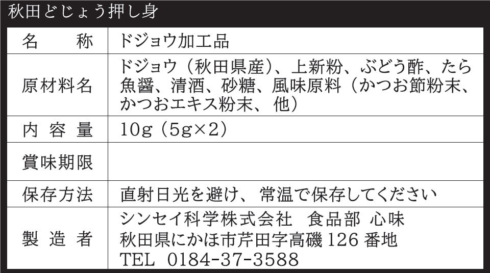 近い将来は宇宙食に「秋田どじょう」?? 宇宙食は、野菜だけではコレステロールなどの脂肪、ビタミンD 、B12、塩分が不足します。そこで、動物性食物として、どじょうが注目されています。JAXAでは、宇宙農業を提案していて、水中の酸素が少ない劣悪な環境でも、水面から空気を吸い込んで消化管呼吸をするなどタフな生き物で、宇宙農業には、どじょうがうってつけの栄養不足解消になると話しています。「秋田どじょう」が宇宙食になる時が間近に控える中、「秋田どじょう」押し身を、是非、皆様この機会にご賞味いただきますようお願い申し上げます。