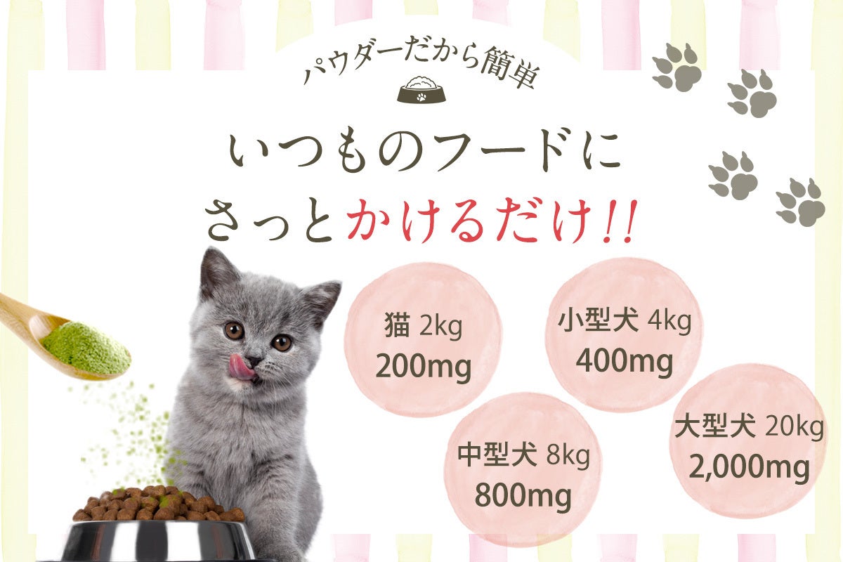 牛乳が苦手だったり、消化に不安のあるわんちゃん猫ちゃんでも、手軽にカルシウムを摂取できます。