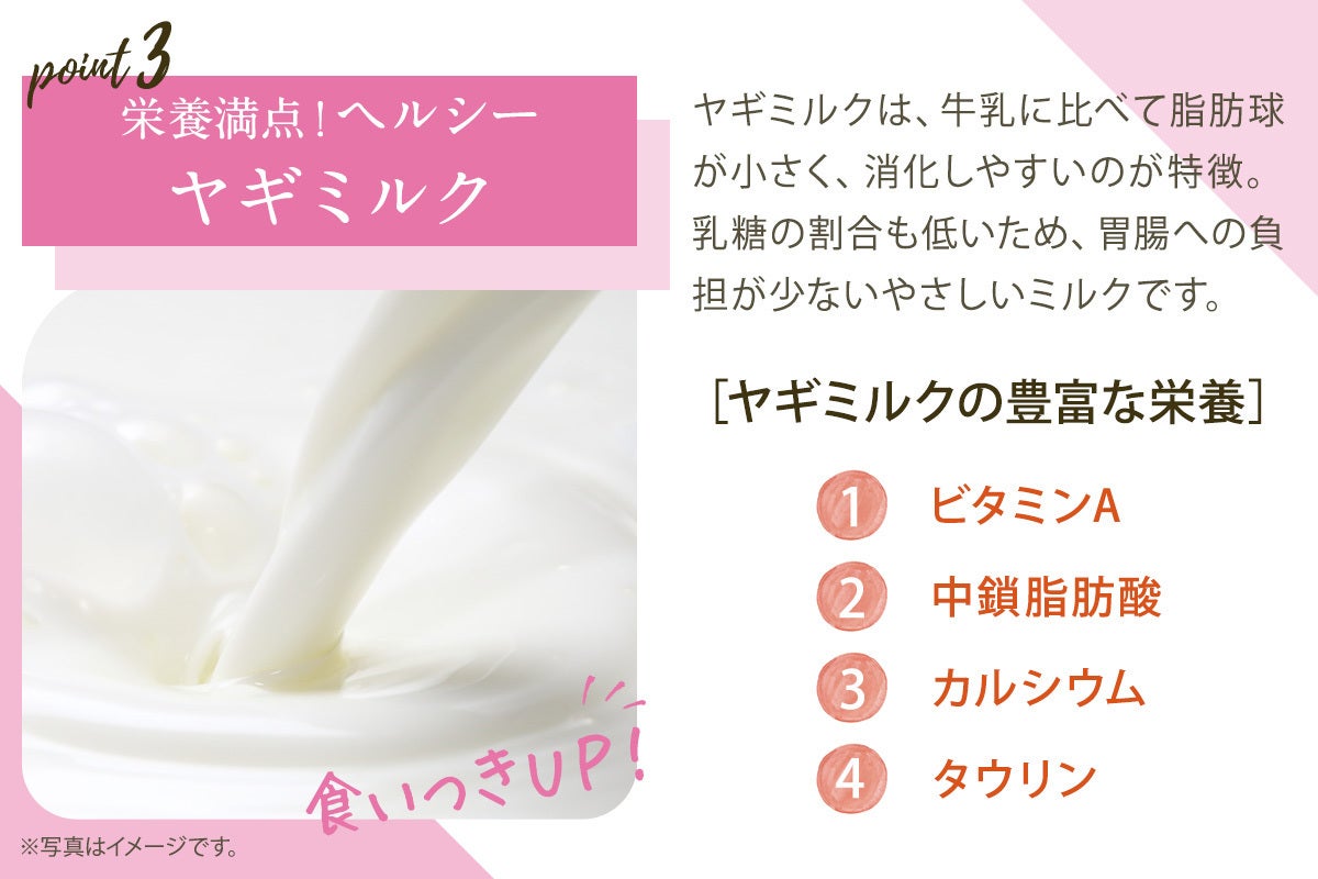 ※牛乳アレルギーの場合はヤギミルクもアレルギー反応が出る可能性があるので摂取はご遠慮ください。