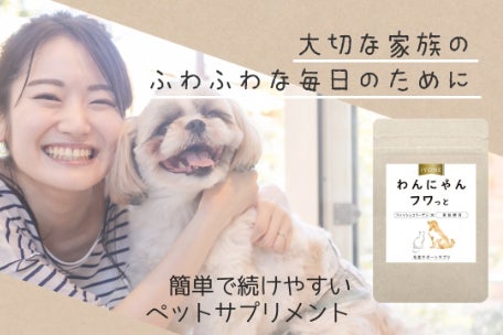 この商品は「ふわっとサポートサプリ」となっており、ワンちゃん猫ちゃんに必要なのにペットフードだけでは不足しがちな成分を配合しました。