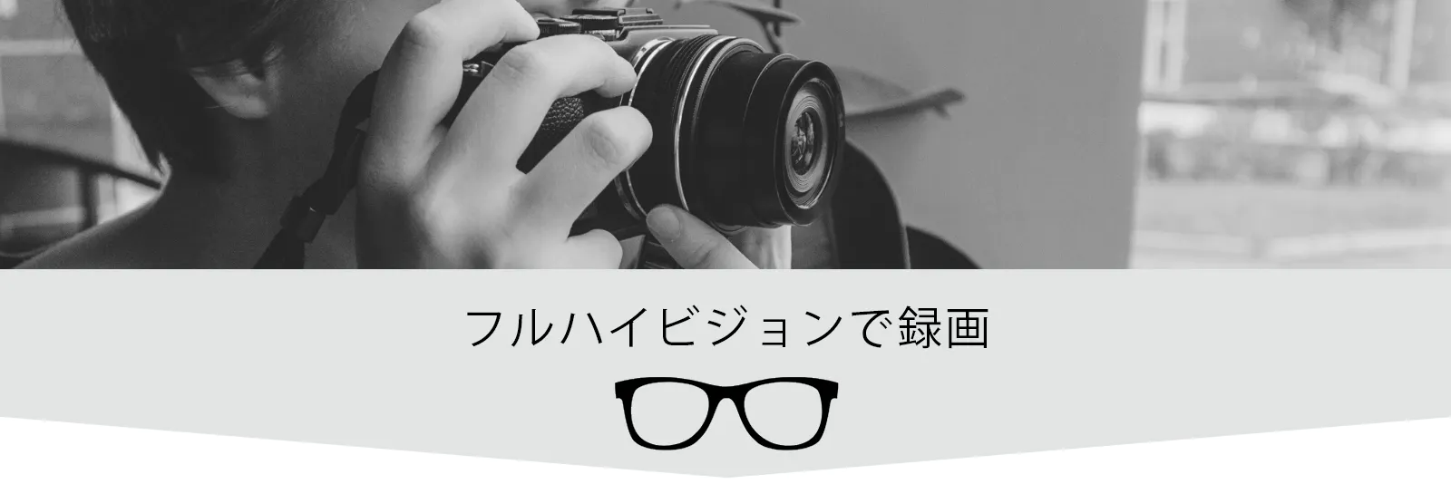 持ち運びが便利で、日常の些細なことも見逃さず、2,7K高性能小型ビデオカメラ。メガネの中心にレンズが付いているので、ハンズフリーで録画できるほか、目線の動きそのままに撮影できるのがとても便利です。