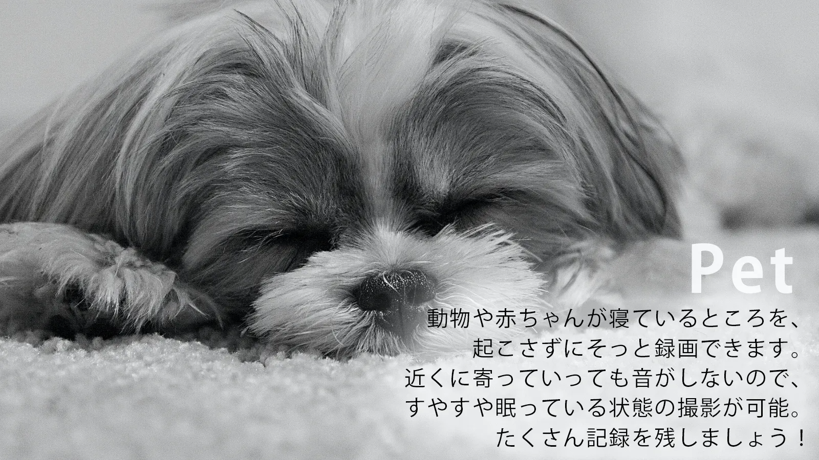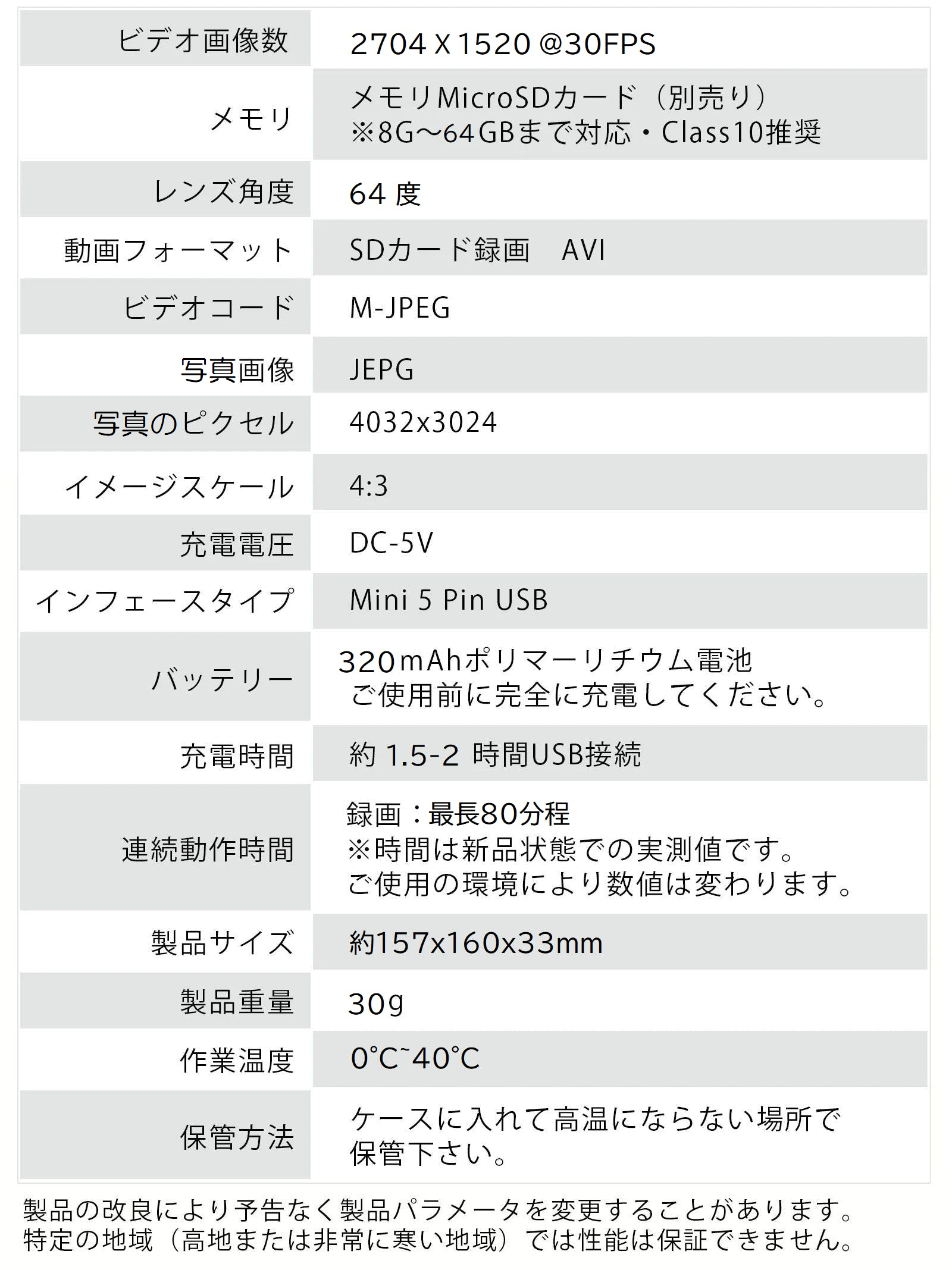 64GBまでMicroSDカード(別売り)が使用可能なため、長時間の撮影が可能です。