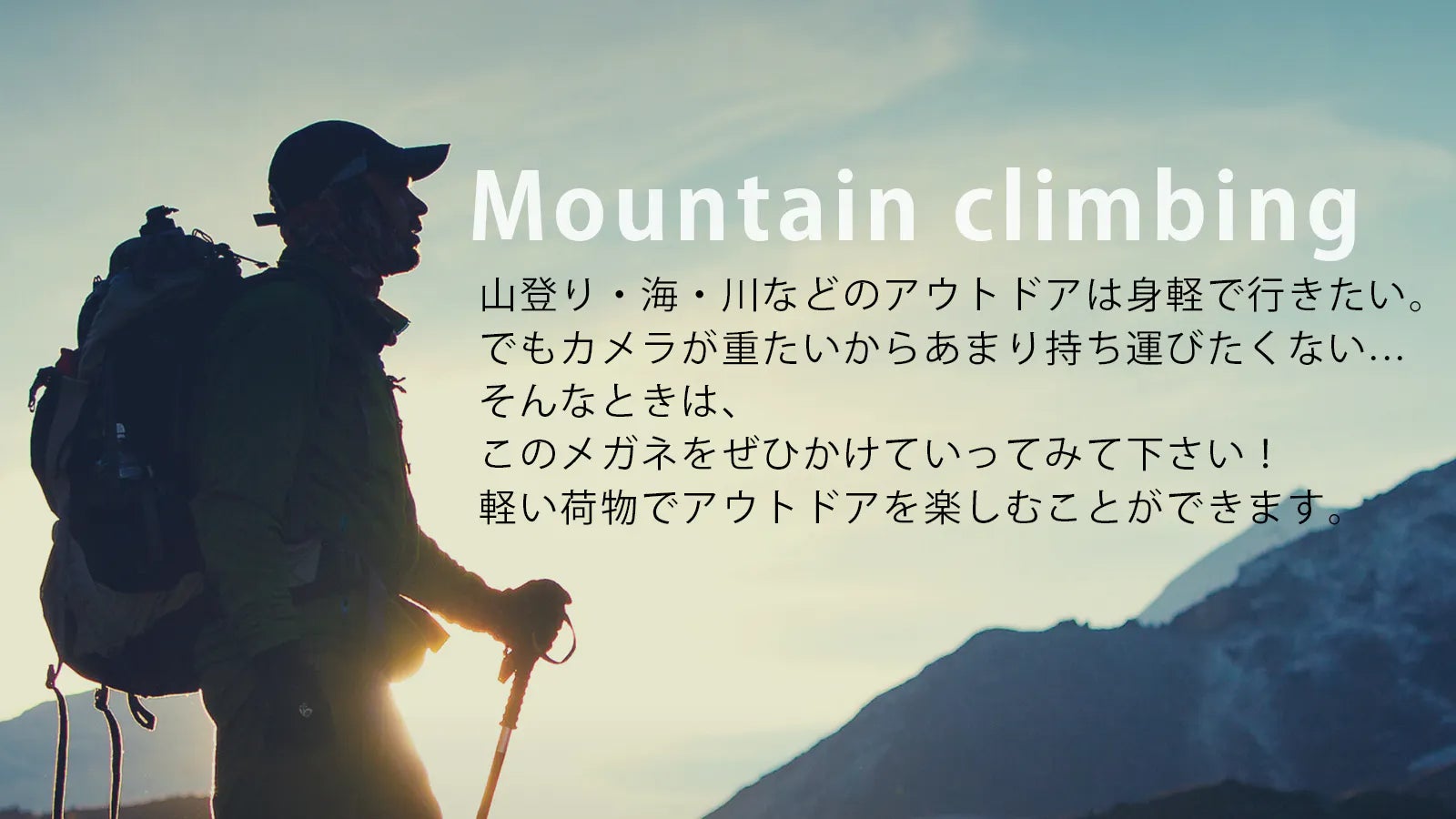 メガネの中心にカメラを装着しております。操作の仕方によって、録画/写真の撮影が可能です。見えている景色そのままビデオ録画や写真撮影をしましょう。