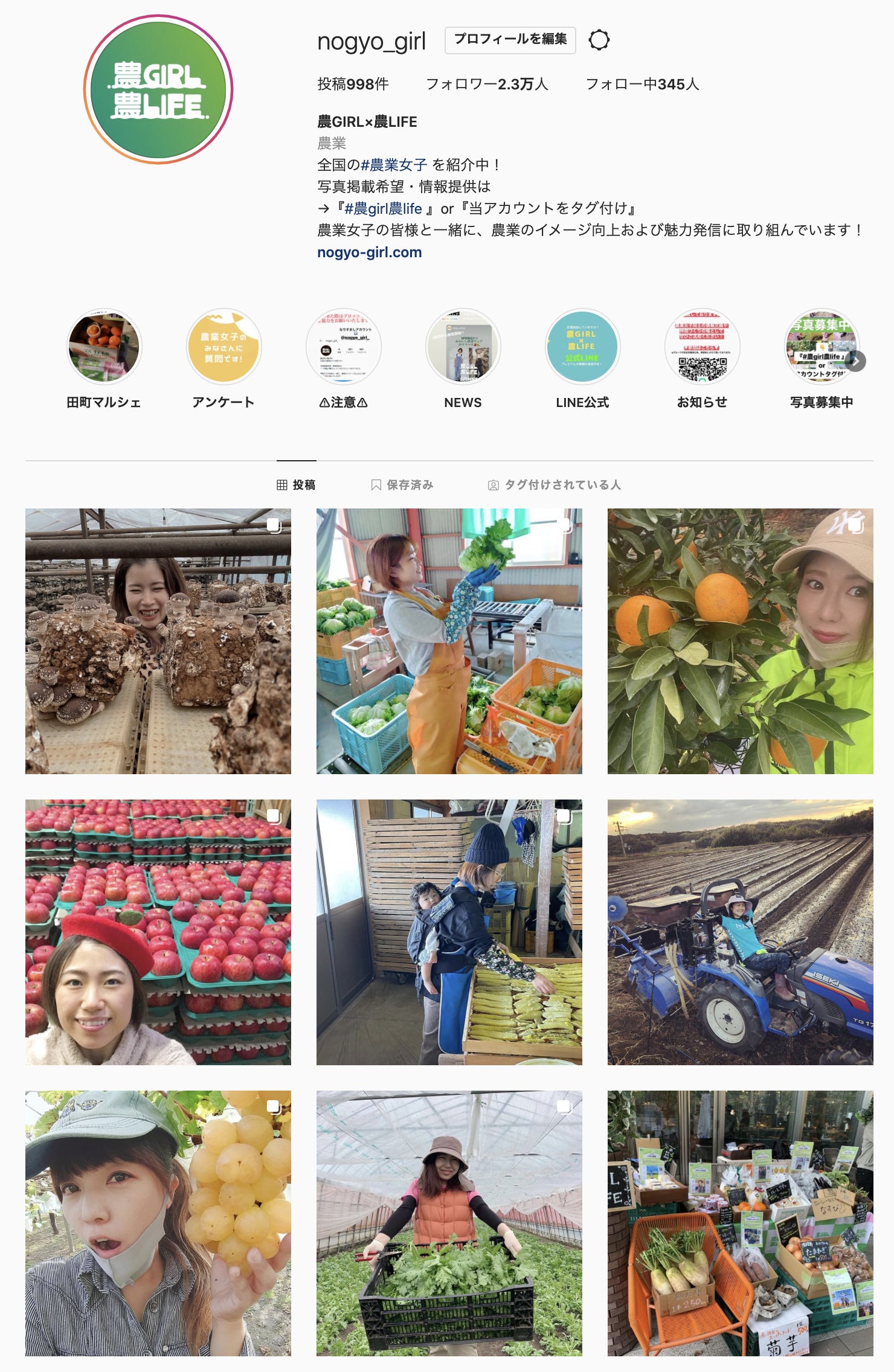 ※全国の農業女子(農GIRL)を紹介しているInstagramアカウント