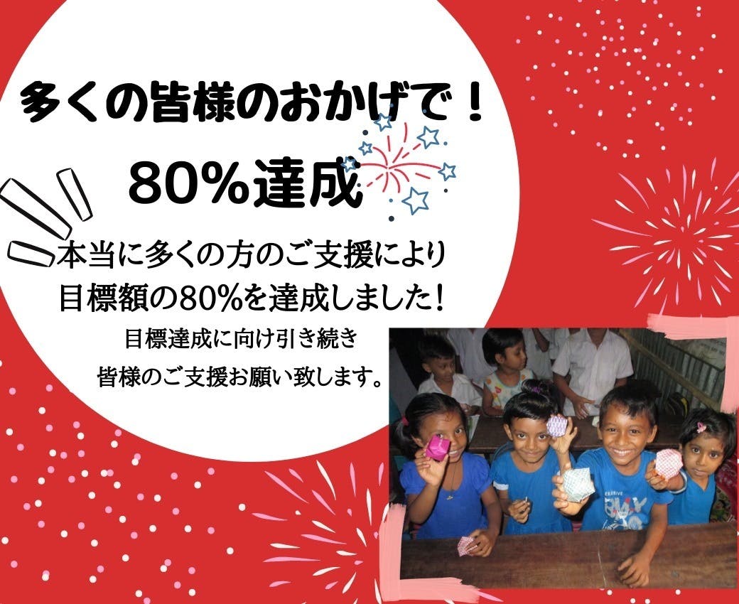 11月1日より「バングラデシュの子どもたちがコロナに負けず学校へ通い続けられる未来を作りたい!」という思いからスタート致しましたクラウドファンディングプロジェクトが、多くの方のご支援により目標金額の80%を達成しました!