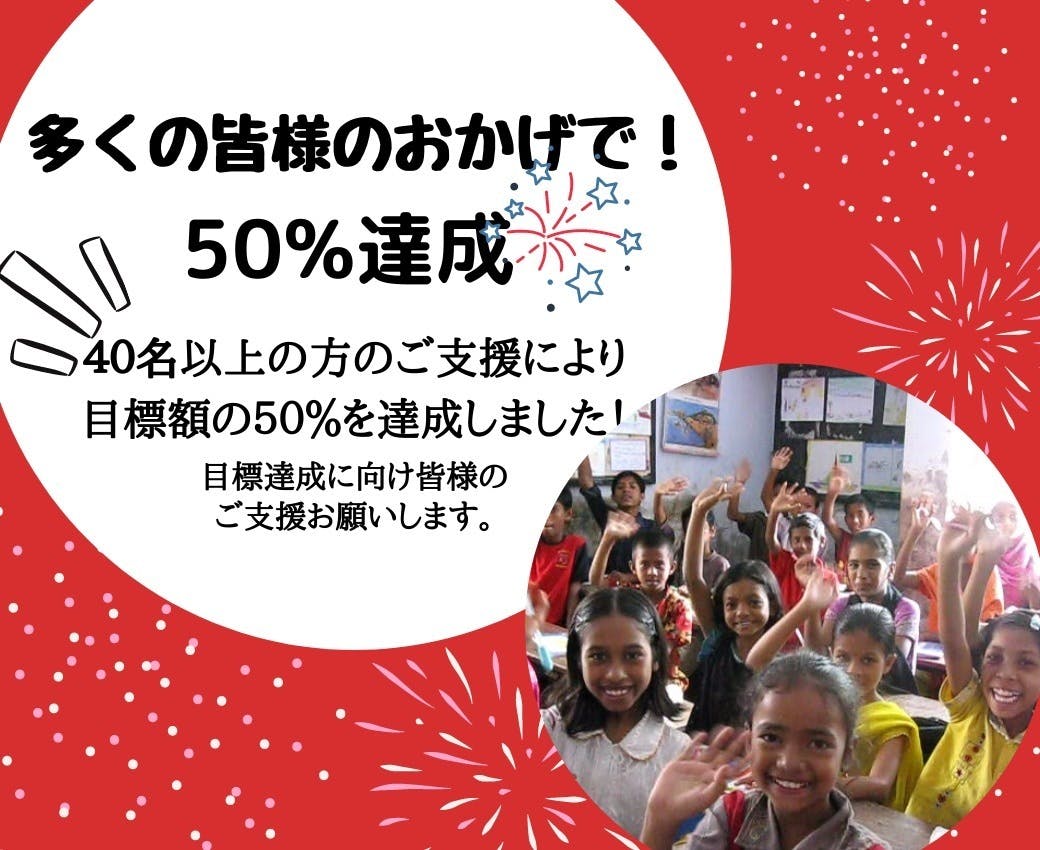 11月1日より「バングラデシュの子どもたちがコロナに負けず学校へ通い続けられる未来を作りたい!」という思いからスタート致しましたクラウドファンディングプロジェクトが、11/6現在、多くの皆様のおかげで早くも目標金額の50%を達成しました!
