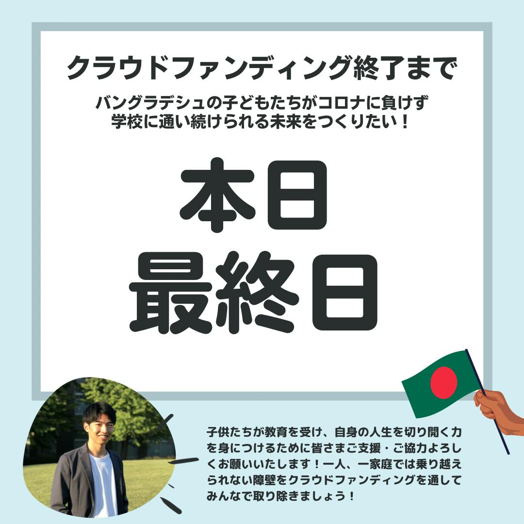 クラウドファンディングのリーダーを務めている圓谷です。本日がクラウドファンディング最終日となります!本キャンペーンはこれまでに100名を超える皆さまから185万円ものご支援をいただき、ネクストゴールに挑戦することができています。本日は私のバングラデシュとクラウドファンディングに対する想いを記したいと思います。