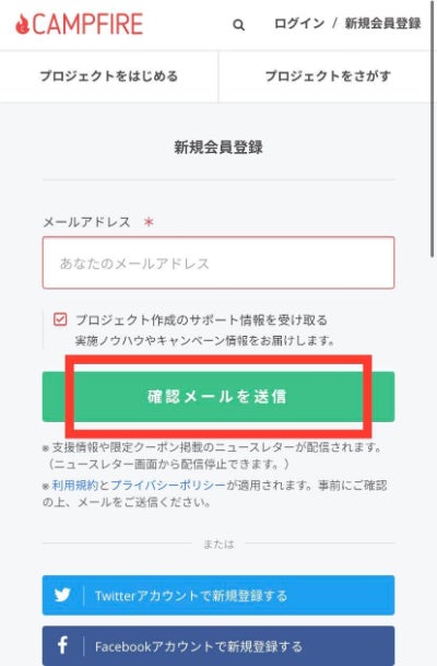 下記の2.~5→ 「CAMPFIRE」※に新規会員登録する