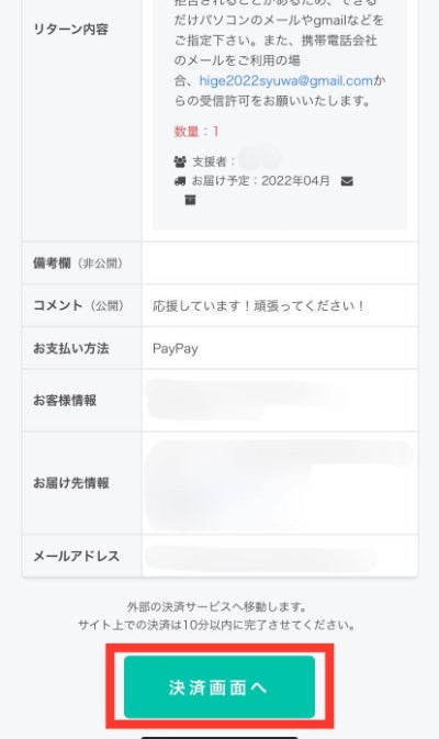 8.登録したメールアドレスにご支援受付のお知らせが届いたら、お手続きが完了です。