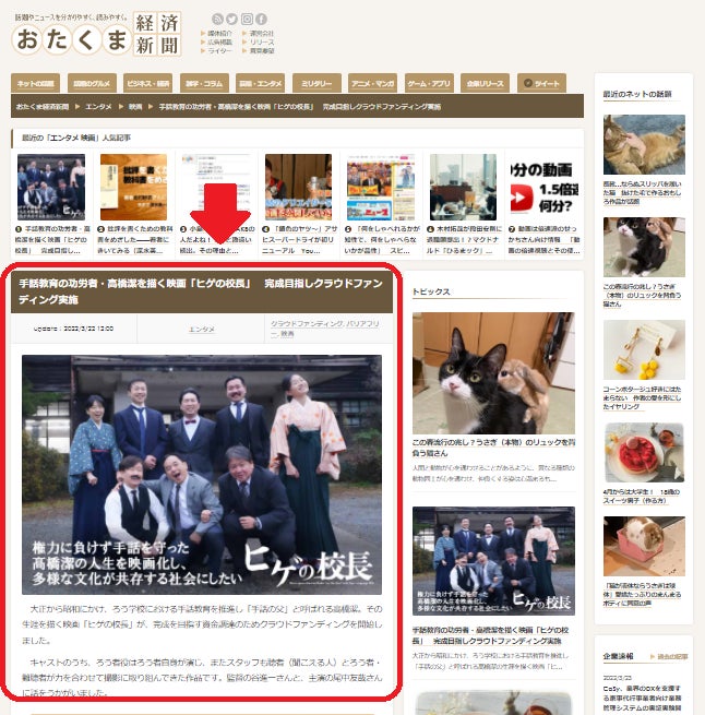 さて、先日「おたくま経済新聞」様に谷進一 監督と髙橋潔役尾中友哉さんのインタビュー記事を載せていただきました。