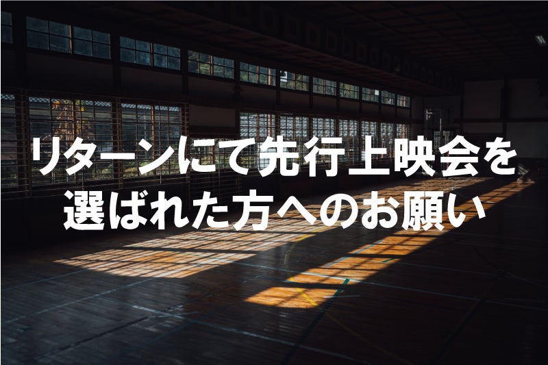 ■対象者:クラウドファンディングのリターンとして、会場での先行上映会を選ばれた方(すでに回答済みの方は対応不要です)