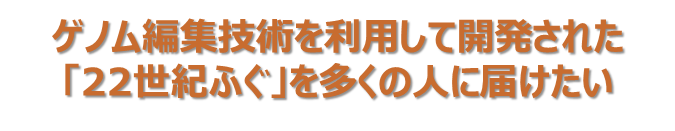 それに比べて、ゲノム編集は、どのような働きを持つ遺伝子がどう変化したか、変化の過程が明確になるため安全です。実際、狙った遺伝子以外の遺伝子に変化(オフターゲット変異) がないことを確認しております。自然界でも起こり得る品種改良なので、安全性の面でも問題ありません。