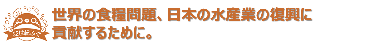 この高成長トラフグは、22世紀にはあたりまえに食卓に並んでいたかもしれないトラフグ。これを先取りするという意味で、「22世紀ふぐ」と名付けました。