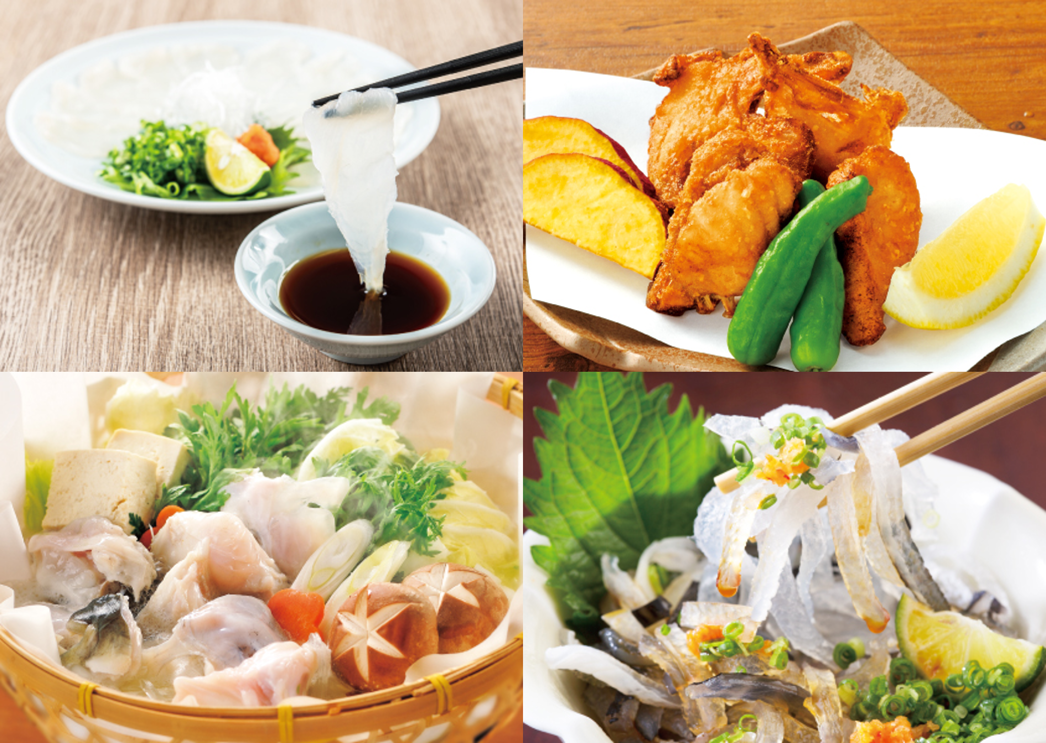 22世紀ふぐを使った料理を、ご自宅で楽しんでいただける食材セットとしてお届けします。 これらの料理は、株式会社関門海の協力の下、メニュー開発・加工されたものです。