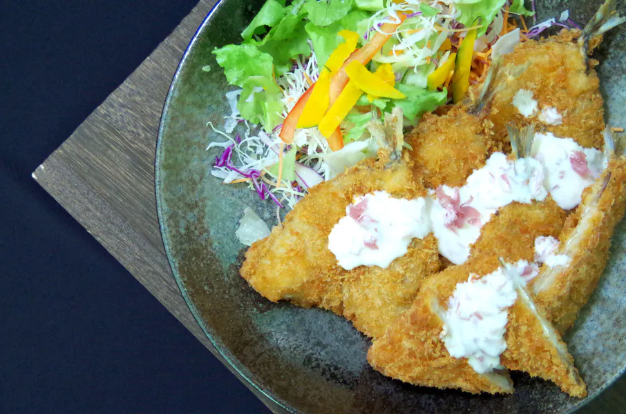 みょうがのタルタルソース風をアジフライにかけて